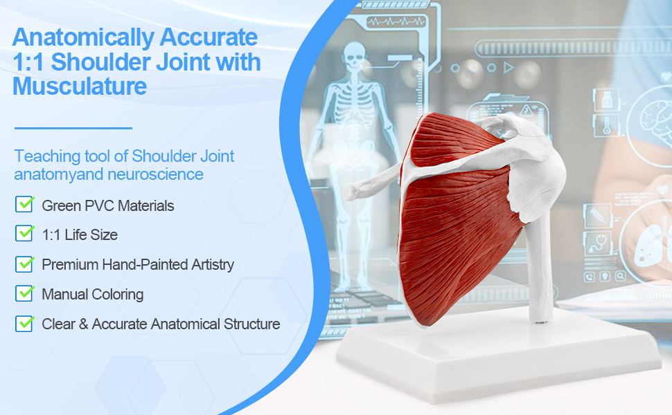 【بولي فينيل كلوريد أخضر ممتاز وهيكل متين】مصنوع من بولي كلوريد الفينيل الأخضر الصديق للبيئة، نموذج مفصل الكتف هذا متين وآمن للاستخدام طويل الأمد وسهل التنظيف - مثالي للفصول الدراسية والعيادات والمختبرات.