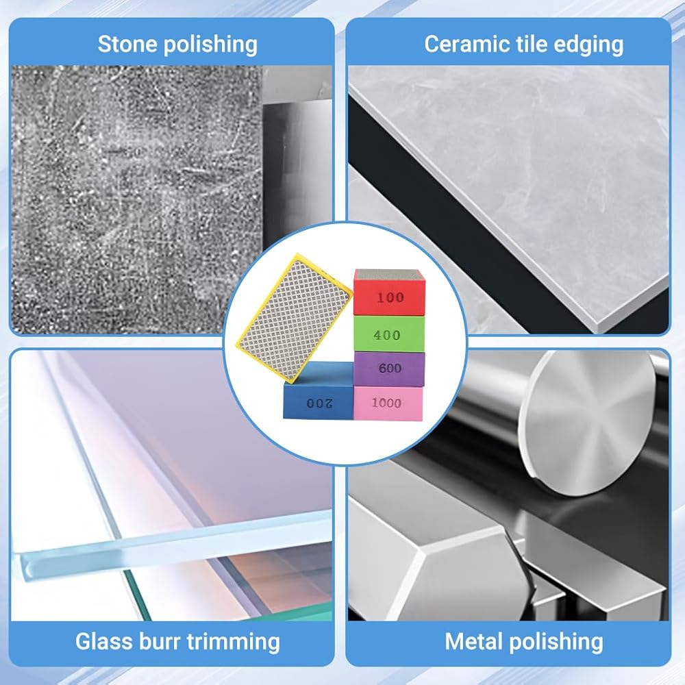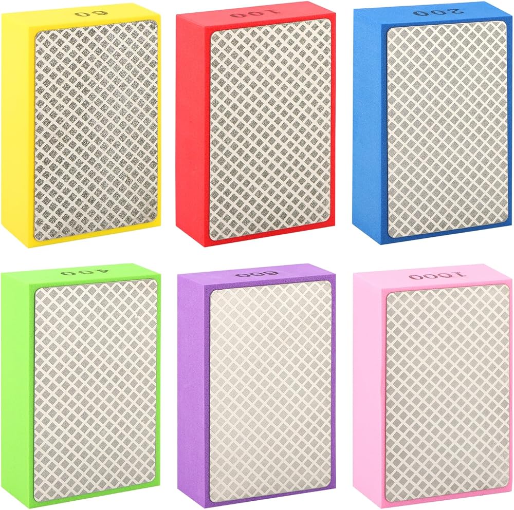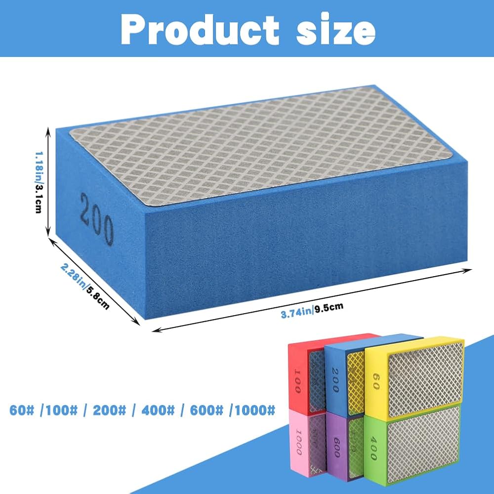 1.[Packing List] These diamond polishing pads include manual polishing pads of 60# /100# / 200# / 400# / 600# /1000#. The size of a single manual sand block is: 3.74 inches x 2.3 inches x 1.22 inches (9.5 x 5.8x 3.1 cm). Help you quickly solve common problems in life such as broken edges, burrs and ground edges.