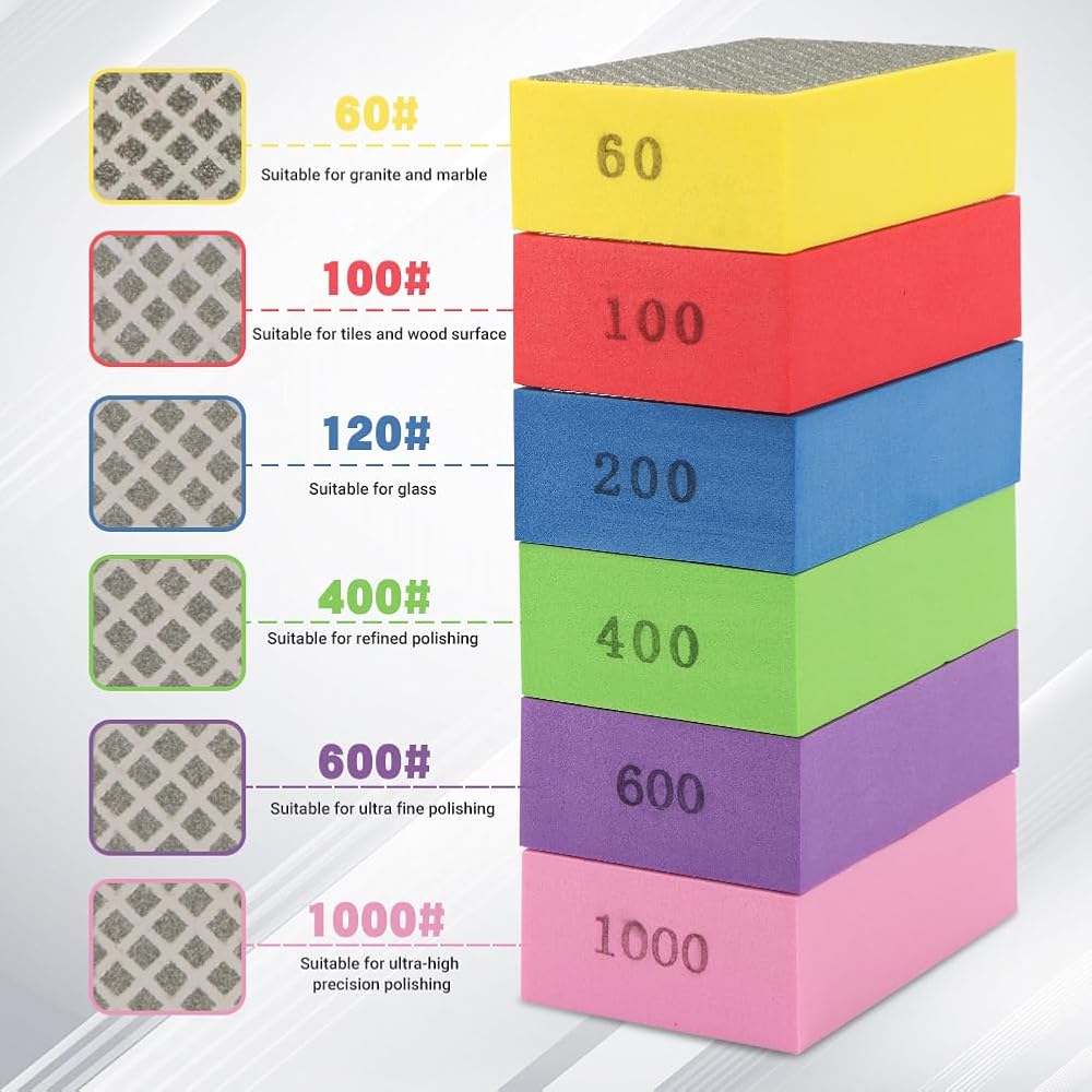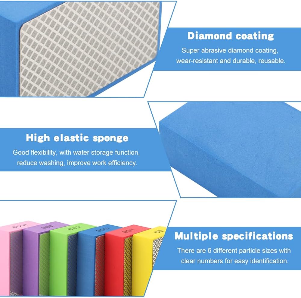 4.[Innovative Design] Our diamond sand blocks come in various particle sizes, each with a clear number and a prominent label. The multi-color sponge design enables easy identification of the size of the gravel, allowing for quick and effortless selection of the sand pad to be used.