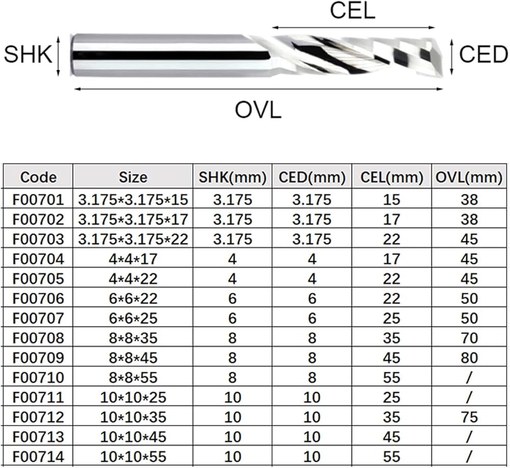 نهاية قاطعة الطاحونة CNC بت المزامير المزدوجة مركب الخشب كربيد النجارة طحن أدوات آلة الحفر جهاز التوجيه (6x6x22)