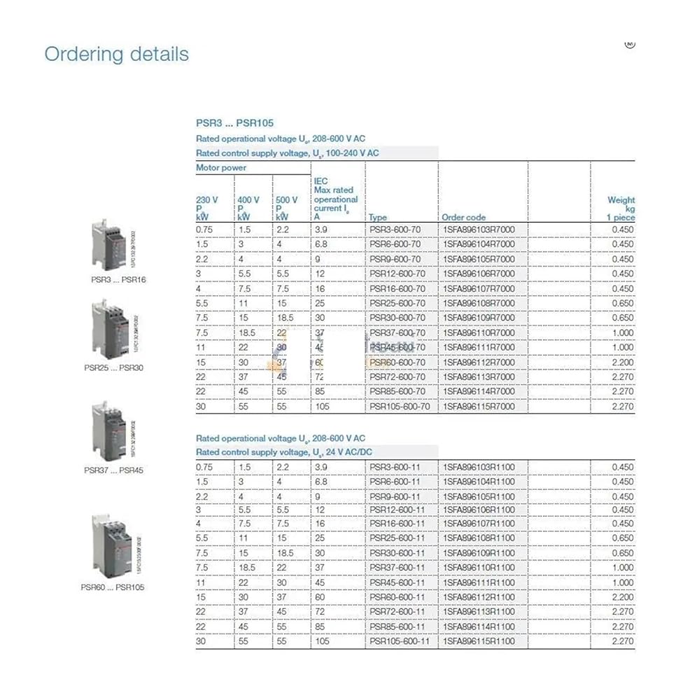 بداية ناعمة مدمجة PSR Range Softstarter PSR6-600-70 3KW 208-600V تركيب السكك الحديدية 1SFA896104R7000