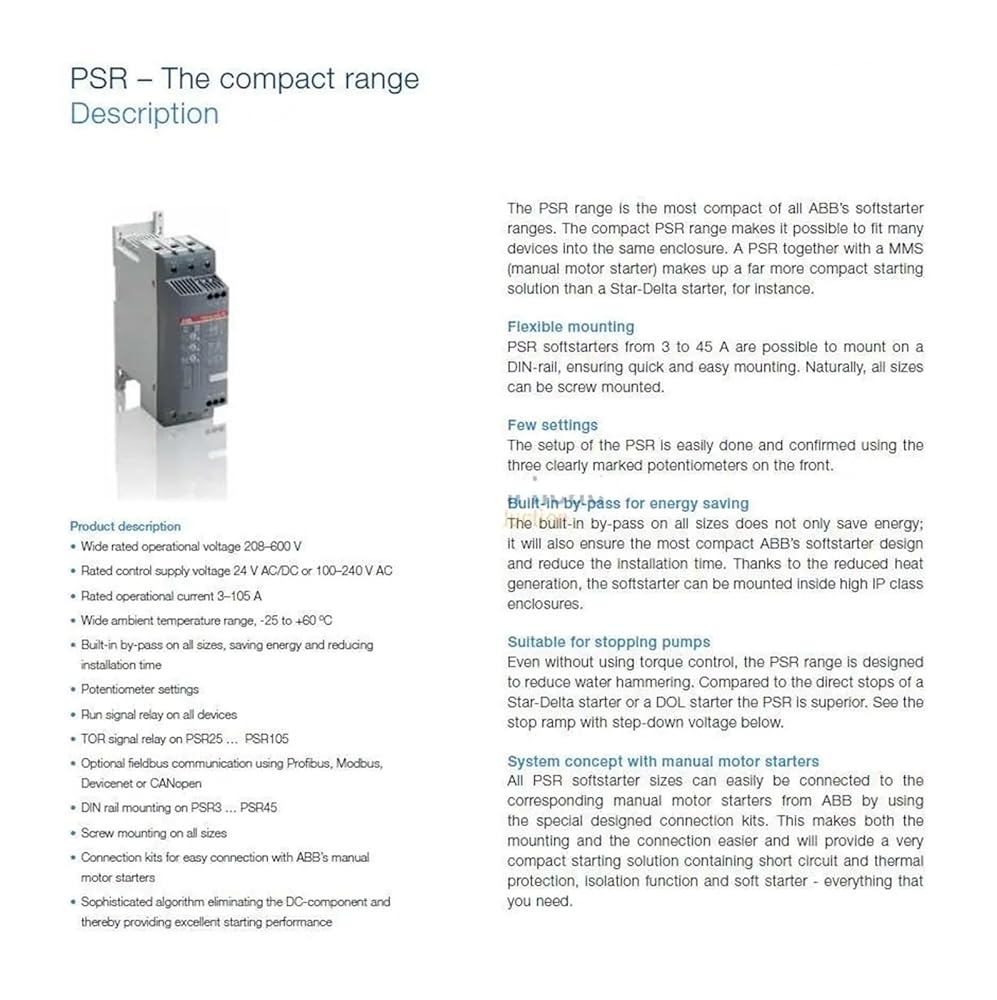 Soft Starter Compact PSR Range Softstarter PSR6-600-70 3KW 208-600V DIN Rail Mounting 1SFA896104R7000