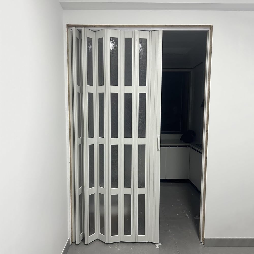Metal Frame Indoors Security Patio Door:Transform your living space with our versatile folding door, designed for both functionality and style. This door is not just a barrier; it enhances your home by providing soundproofing and noise reduction, ensuring a tranquil environment. Its draught-proof and temperature-locking features make it an ideal solution for maintaining comfort in any room throughout the seasons. **Product Highlights:** - **Material Composition:** Crafted from a durable aluminum alloy track, PVC door panel, and an acrylic window, our folding door is built to last while adding a modern touch to your decor. - **Customizable Dimensions:** Tailor the width from 23" to 80" and height from 39" to 80" to perfectly fit your space. The sleek blade width ranging between 15 cm to 17 cm ensures a seamless look. - **Easy Installation:** Each package includes installation accessories for hassle-free setup. Note that the magnetic door post aligns with the handle for smooth operation. **Key Features:** - **Strong Magnetic Closure:** Equipped with hidden magnetic strips, this door offers robust closure while enhancing your home's aesthetics. - **Space Divider:** Use it to elegantly partition your living areas, effectively separating rooms while maintaining an open feel. - **Low Maintenance:** The design is gentle on floors and easy to clean, allowing you to enjoy its benefits without extensive upkeep. - **Odor Control:** Perfect for kitchens and bathrooms, it helps block unwanted odors and kitchen fumes, enhancing your home's comfort. **Important Notes:** - Ensure installation on clean, smooth surfaces for optimal performance. - Measure your door frame accurately to avoid sizing issues. - A slight size variation of 1-2 cm may occur due to manual measurement. Please refer to the actual product for precise dimensions. - Color may vary slightly from the images due to lighting and monitor settings. **Customer Support:** We are committed to your s