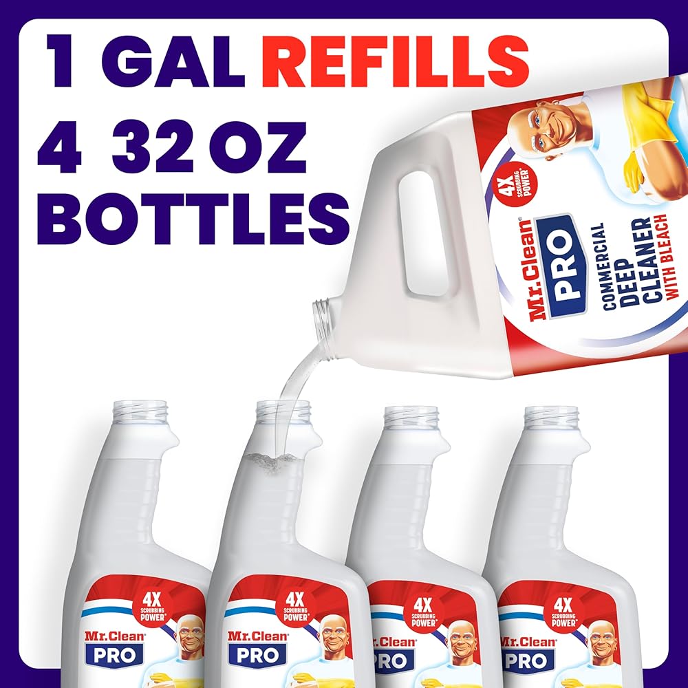 مستر كلين برو منظف عميق مع مبيض للأسطح التجارية الصلبة، عبوات رذاذ كبيرة، 1 جالون (علبة مكونة من 3)