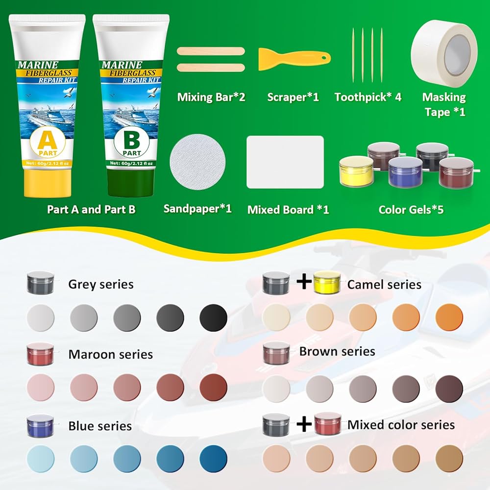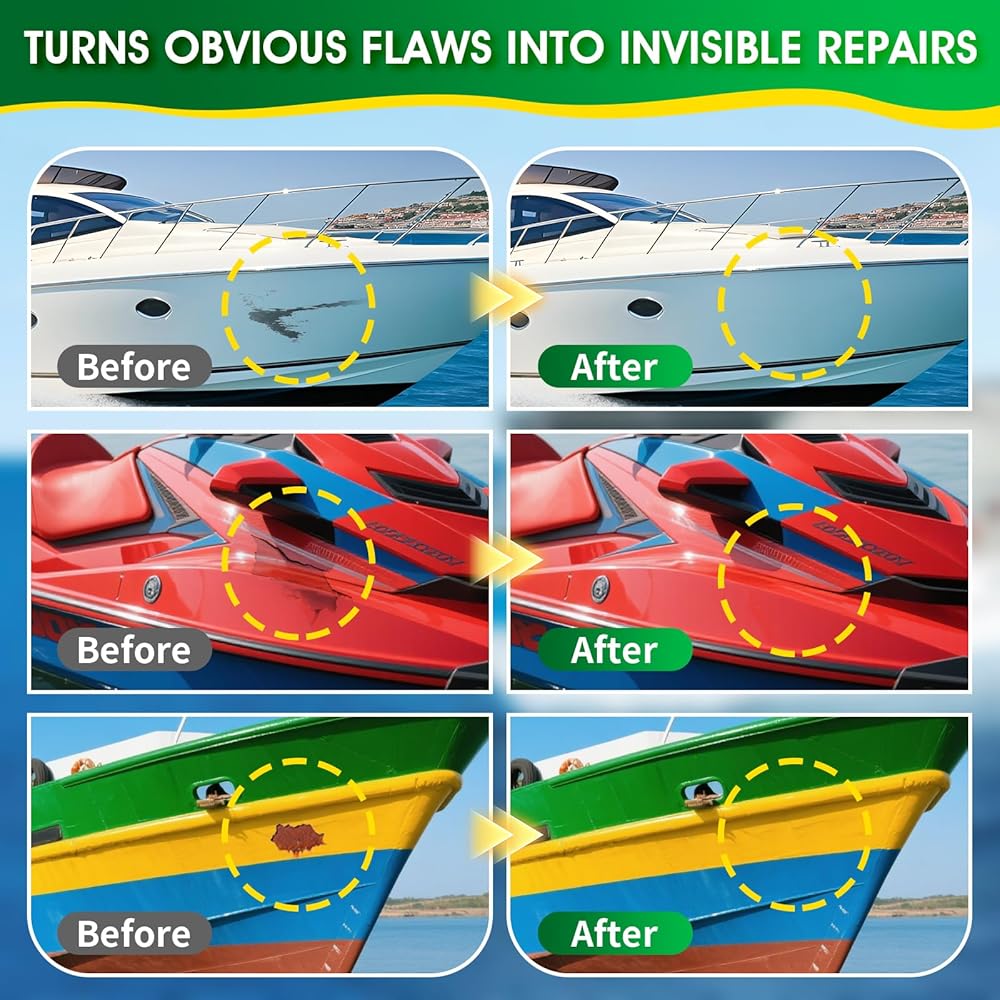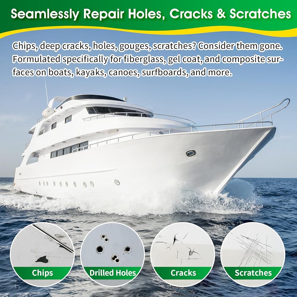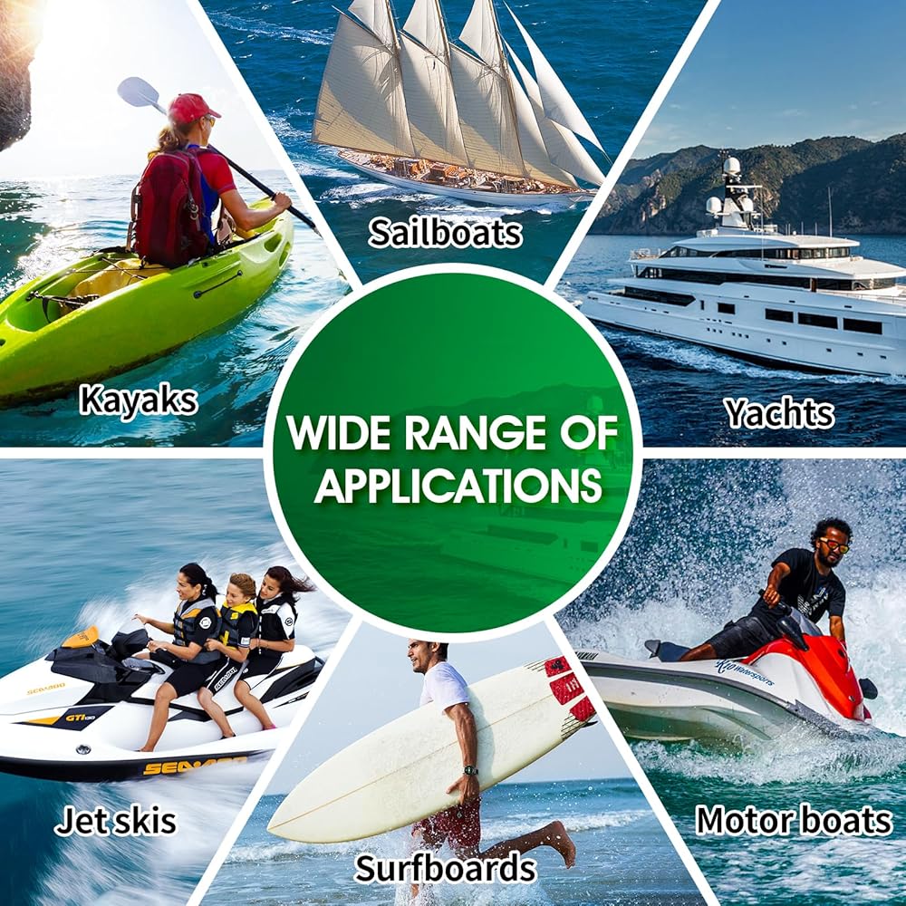 تطبيق متعدد السيناريوهات: مجموعة إصلاح القوارب المصنوعة من الألياف الزجاجية تعمل على إصلاح الرقائق والشقوق والثقوب والخدوش على الزلاجات النفاثة وقوارب الكاياك والقوارب الشراعية واليخوت وألواح ركوب الأمواج والأسطح والمزيد. الحفاظ على السفن في حالة جيدة.