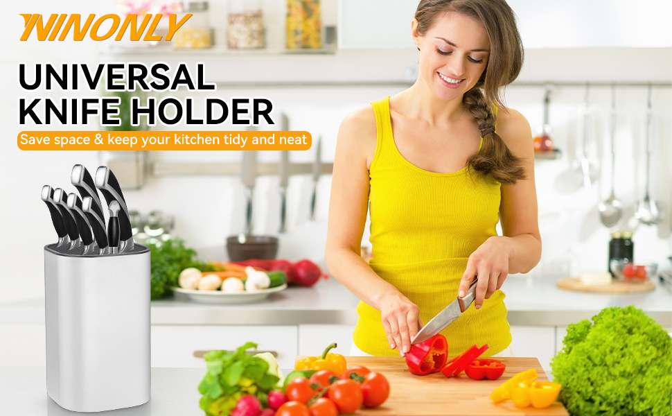 حامل سكاكين عالمي 2 في 1: يلبي احتياجات التخزين اليومية الخاصة بك. يتيح لك التصميم المرن المزدوج المموج لكتلة السكاكين العالمية تخزين أدوات تقطيع المطبخ بمرونة بأحجام مختلفة وفقًا لاحتياجاتك، مثل قواطع اللحوم وسكاكين الطهاة وسكاكين شرائح اللحم وسكاكين الخبز وسكاكين الفاكهة وما إلى ذلك.