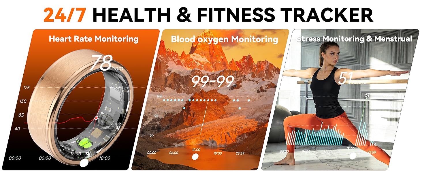 • 【تتبع النوم والحيوية على مدار الساعة طوال أيام الأسبوع 】 تم تصميم هذه الحلقة الذكية بدقة، حيث تراقب مراحل نومك (العميق والخفيف وحركة العين السريعة) وتنتج درجة نوم يومية. إنه يتجاوز الأساسيات من خلال تتبع معدل ضربات القلب وأكسجين الدم (SpO2) ومستويات التوتر (HRV) ودورات الحيض. سواء كنت تدير التوتر أو تتتبع أهداف اللياقة البدنية، فإن حلقة اللياقة البدنية Osawalla تعمل بمثابة الوصي الصحي طوال اليوم