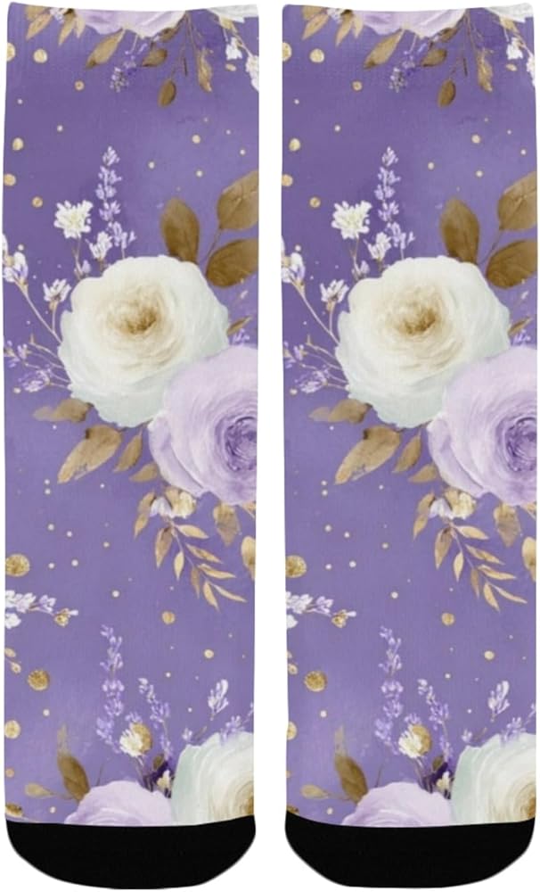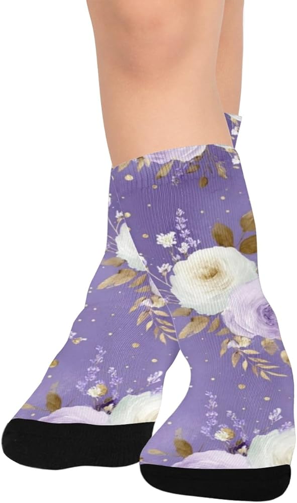 جوارب Lavender Gold Bloom Purple للمشي لمسافات طويلة - جوارب شتوية حرارية سميكة دافئة للأولاد والبنات للمدرسة، والارتداء اليومي والأنشطة الخارجية