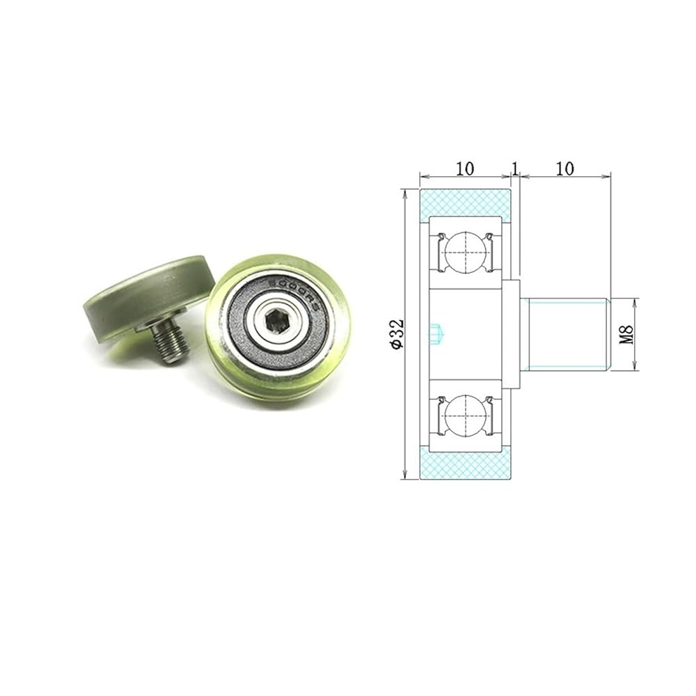 1 piece OD32 X W10 X M8 roller soft rubber pulley