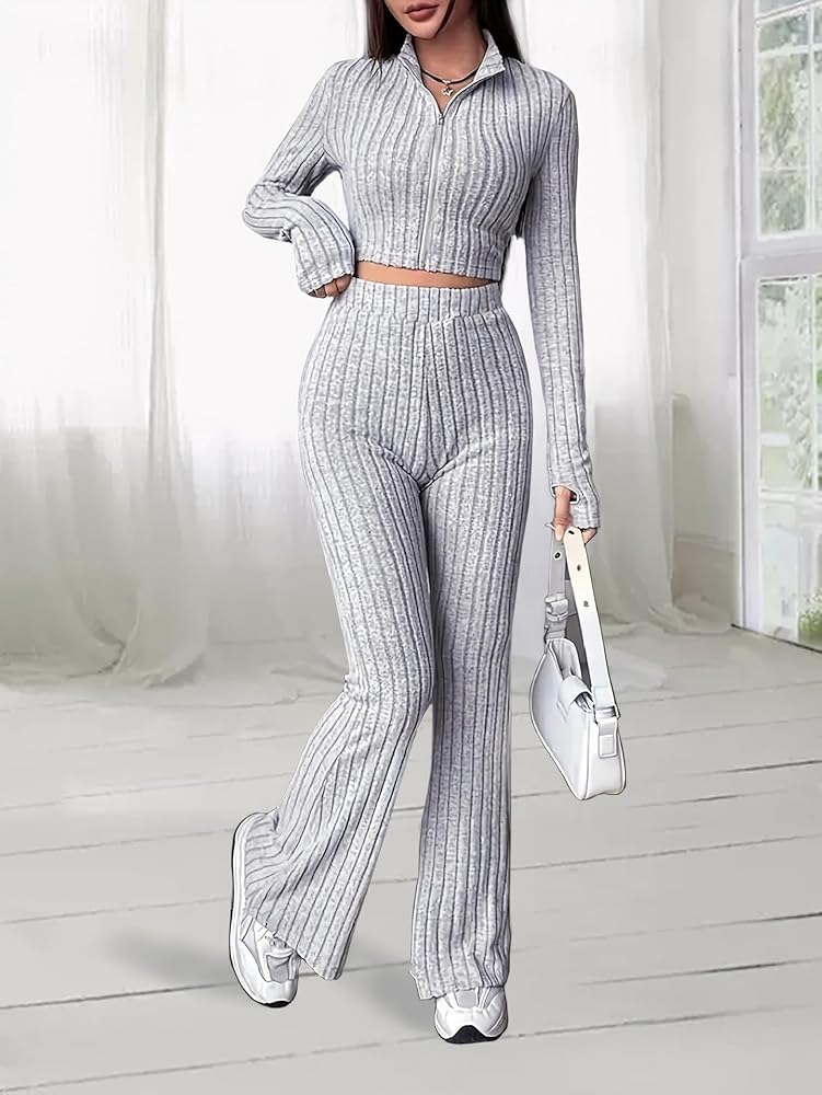 طقم ملابس رياضية للسيدات مكون من قطعتين، سروال رياضي برقبة على شكل حرف V لملابس الخريف