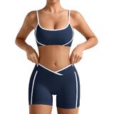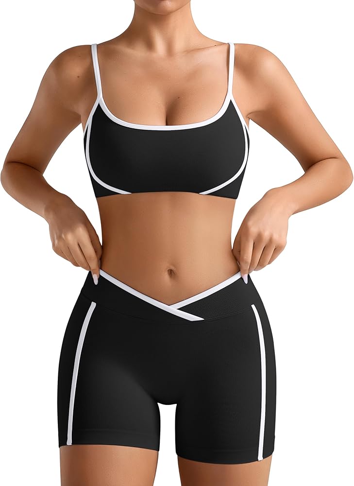 • 【زخرفة متباينة】تكمل الخطوط الملونة على جانبي الجزء العلوي والسراويل القصيرة بعضها البعض، وتحدد منحنيات الجسم. زخرفة بيضاء على خط الرقبة وأشرطة الكتف والخصر، مما يخلق تأثيرًا بصريًا قويًا وأكثر أناقة وبروزًا.