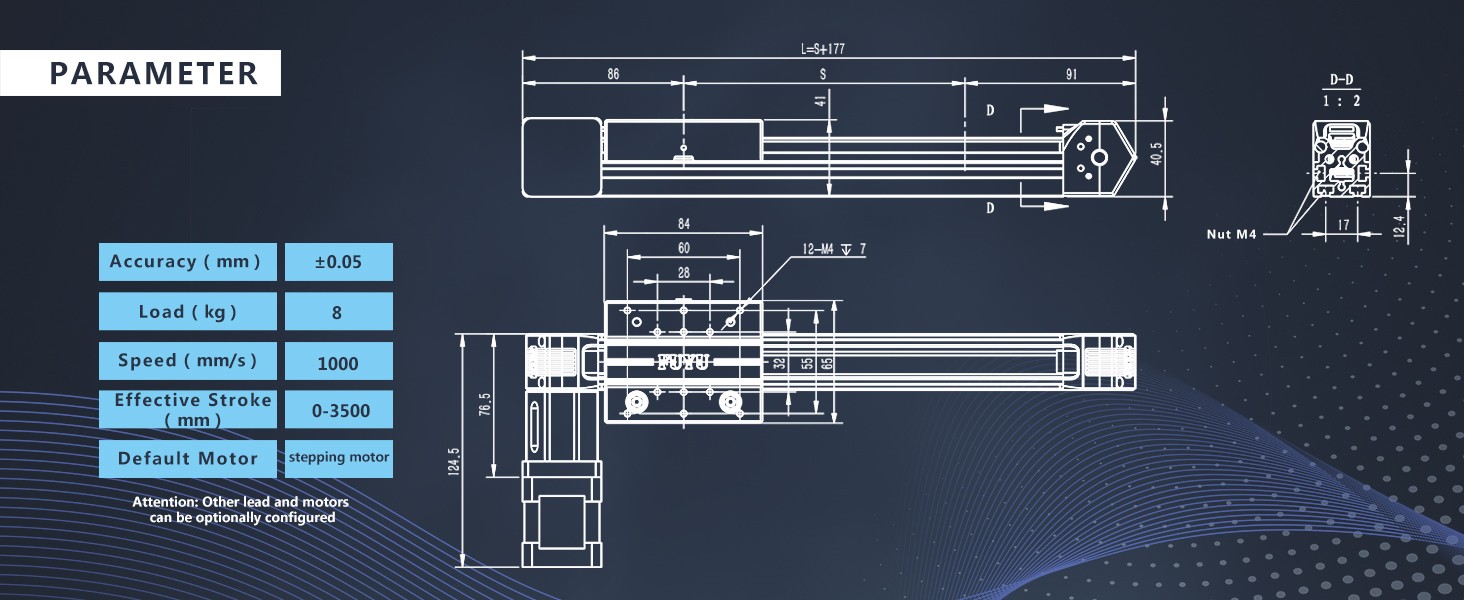 • يدعم الدليل الخطي الحد الأقصى للسكتة الدماغية حتى 3500 مم، محرك متدرج Nema 17(4247) الافتراضي، ويقبل التخصيص للسكتة الدماغية/المحرك/متعدد المحاور.