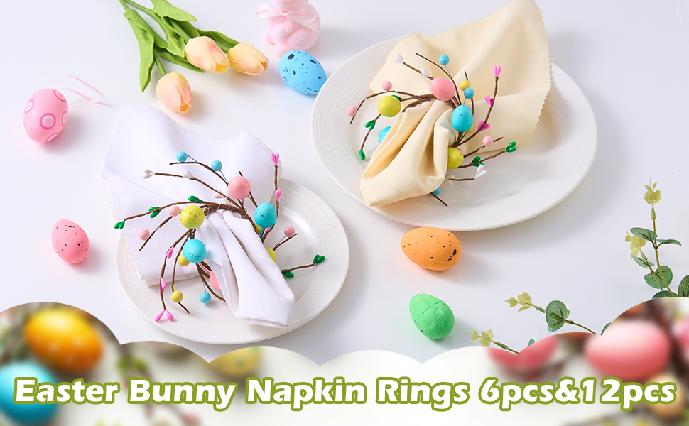 【روح عيد الفصح】: كل حلقة منديل إكليل مصنوعة من مادة محاكاة. المواد المستخدمة موثوقة وطويلة الأمد، ومقاومة للكسر أو التشوه، مما يضمن متانتها. أضف حلقات المناديل هذه إلى طاولة عيد الفصح الخاصة بك واخلق ذكريات ممتعة مع العائلة والأصدقاء.