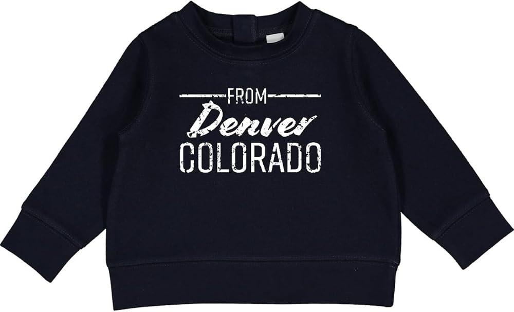 - Show some hometown pride in our From Denver, Colorado in Distressed White Text Baby Sweatshirt.