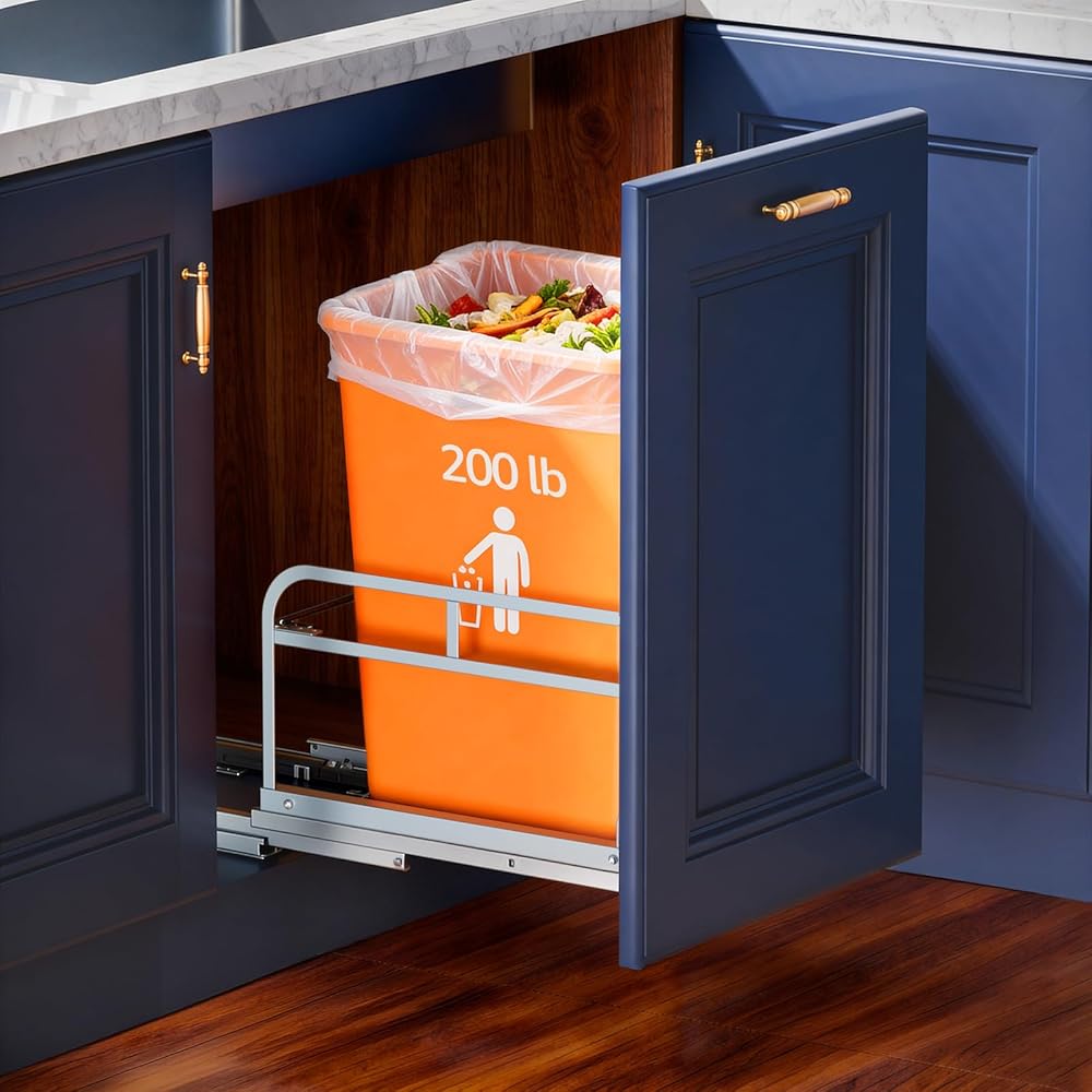 Designed to fit neatly inside your cabinet, this under cabinet trash can pull out keeps garbage out of sight, helping reduce odors and maintain a clean, modern kitchen. It's perfect for homeowners looking to optimize storage in kitchens, apartments, or compact spaces.