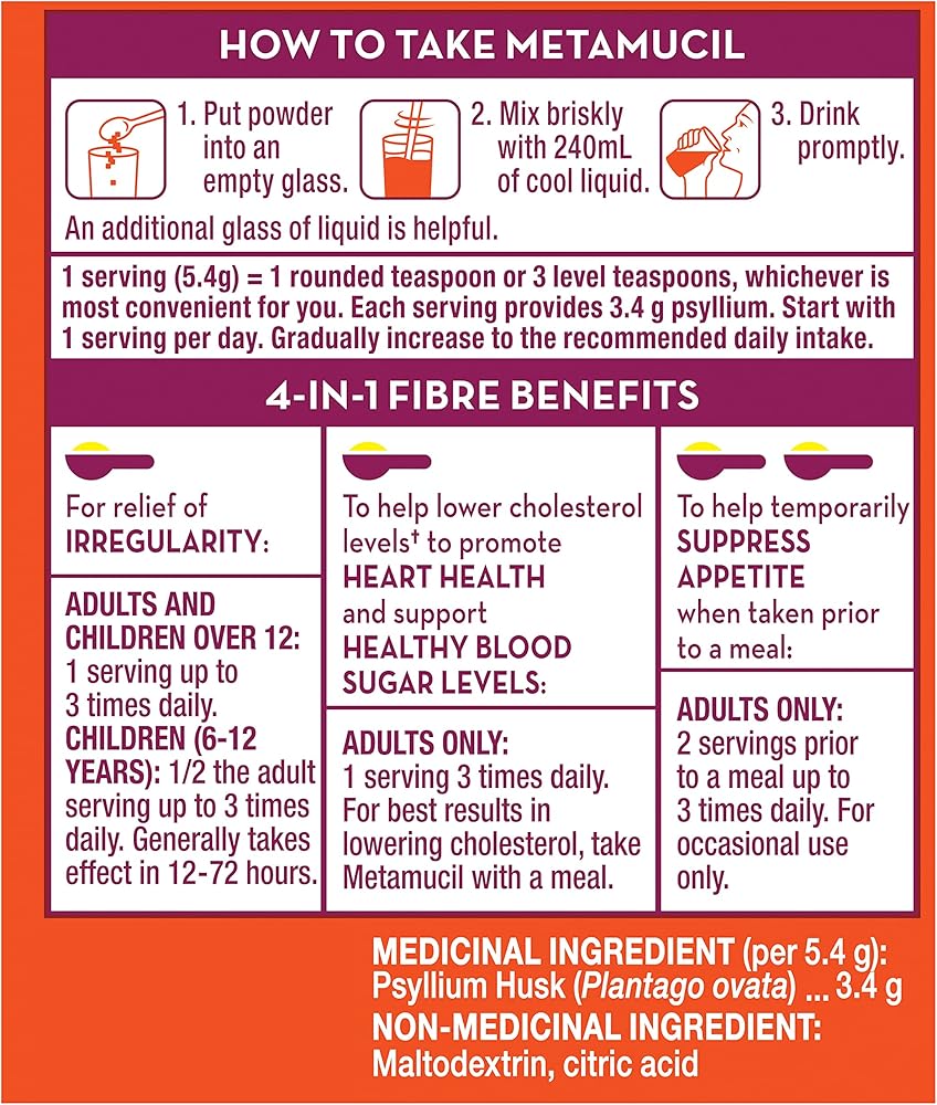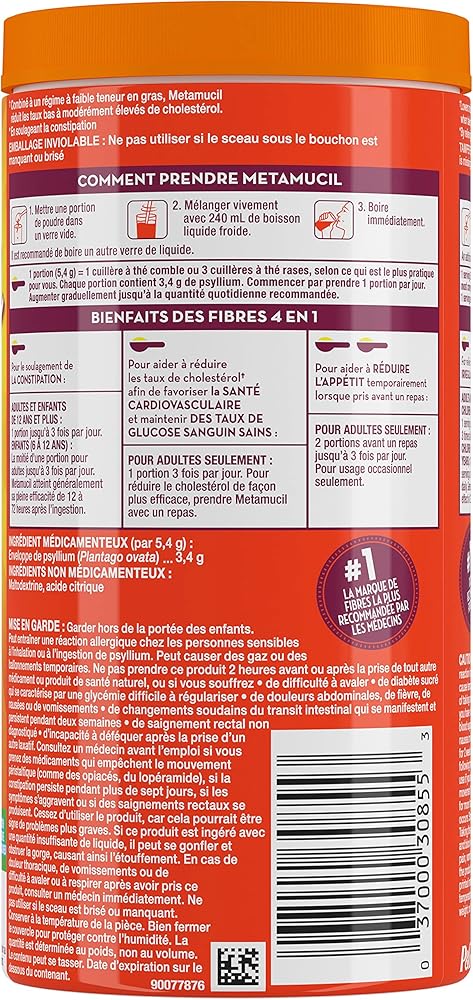 مصنوعة من ألياف السيلليوم. مزيج ميتاموسيل الخالي من السكر مصنوع من ألياف السيلليوم من مصادر طبيعية والتي تساعد على تعزيز صحة الجهاز الهضمي عن طريق تخفيف المخالفات.