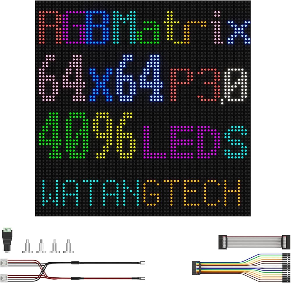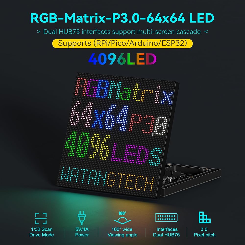 شاشة فائقة الدقة: دقة 64 × 64 (4096 مصباح LED RGB) مع درجة بكسل 3.0 ملم للحصول على نصوص واضحة ورسوم متحركة ورسومات نابضة بالحياة.
