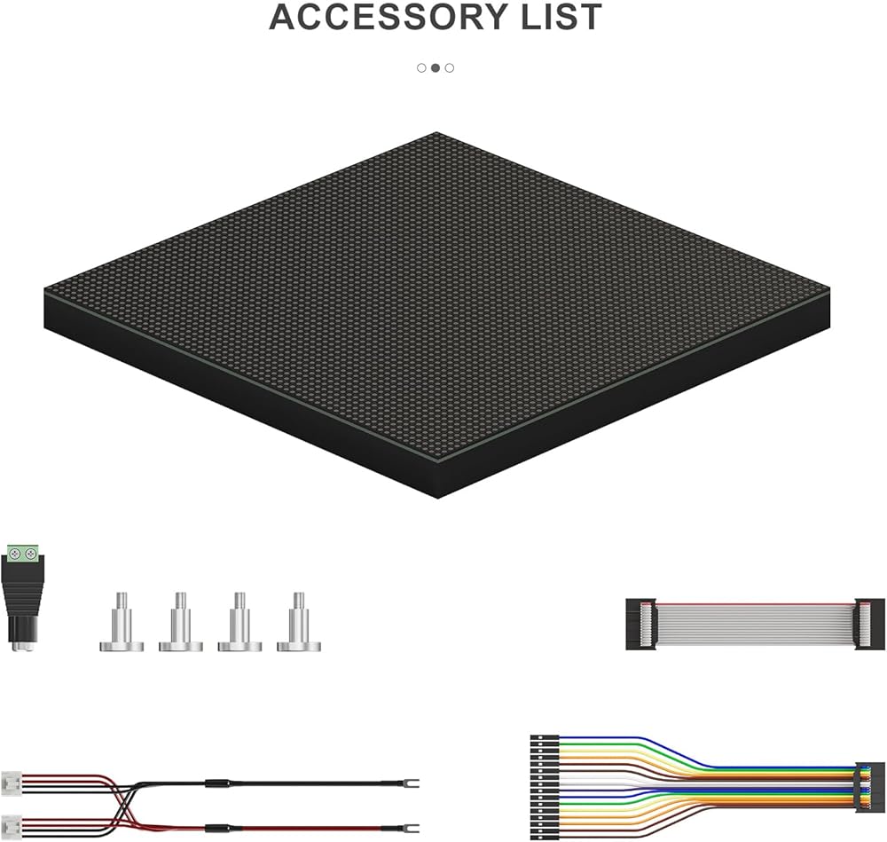 زاوية عرض واسعة: رؤية ≥160 درجة، مثالية للافتات الرقمية والألعاب والمشروعات الإبداعية. التوصيل والتشغيل: يشتمل على كابلات الطاقة وكابلات الشريط والدبابيس المغناطيسية للإعداد السريع.