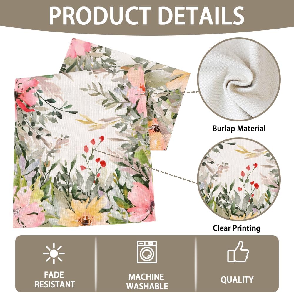 Excellent Features: The watercolor flowers spring table runner has high heat resistance to protect your table from hot pans, scratches and food stains, extending the service life of your table. And it is easy to clean, you can choose a gentle mode of machine washing, and lay it flat to dry.