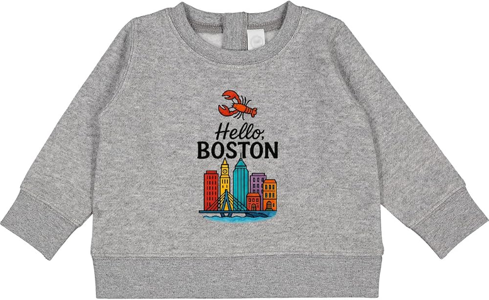Experience the vibrant spirit of Boston with this eye-catching skyline design featuring a playful lobster, perfect for fans of this iconic city. The colorful depiction of Boston's architectural landmarks, along with the charming lobster, makes this Baby Sweatshirt a great way to showcase your love for the city.
