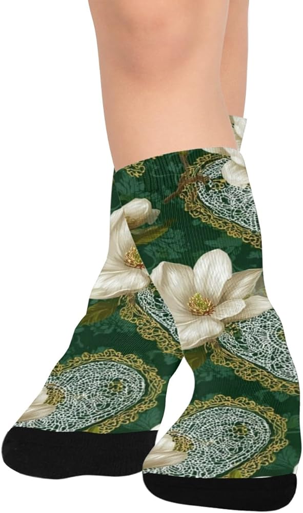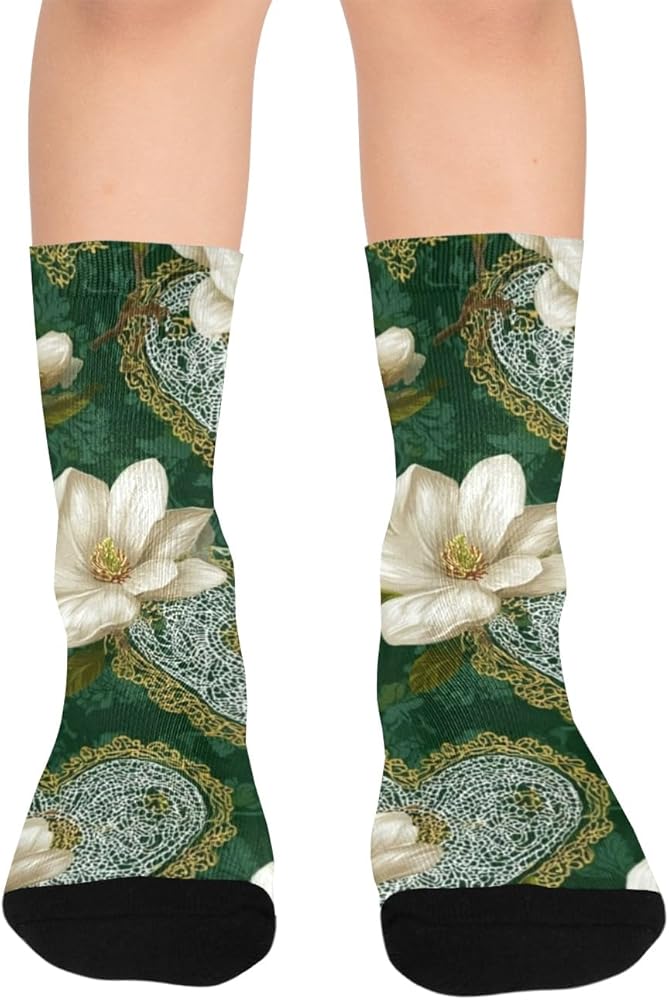 جوارب ماغنوليا وقلب أخضر للمشي لمسافات طويلة - جوارب شتوية حرارية سميكة دافئة للأطفال الصغار للأولاد والبنات للمدرسة، والارتداء اليومي والأنشطة الخارجية