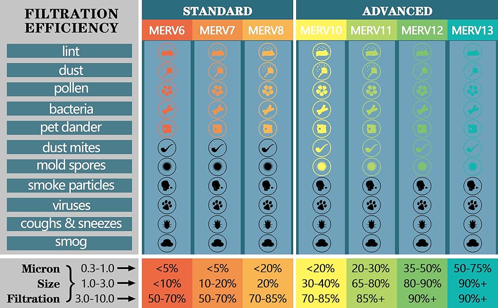 مادة تنقية الهواء عالية الجودة: مادة فلتر MERV 13 هذه مصنوعة من ألياف البوليستر عالية الجودة، والتي تتميز بصلابة جيدة لالتقاط الجسيمات بكفاءة ومرونة معتدلة لسهولة التركيب. يمكنه تقليل الغبار ووبر الحيوانات الأليفة والجسيمات الأخرى المحمولة بالهواء بشكل فعال في منزلك أو مساحتك التجارية، مما يضمن جودة هواء داخلية صحية ونظيفة.