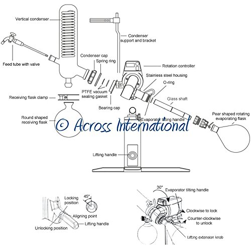 عبر International SE05-S1.110 Ai SolventVap 0.5 جالون/2 لتر مبخر دوار مع مبرد ومضخة تفريغ، 110 فولت