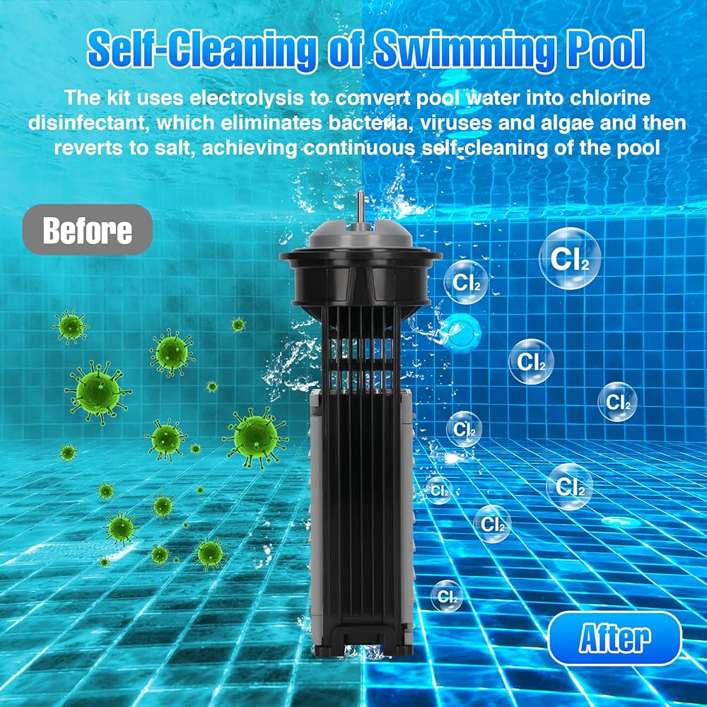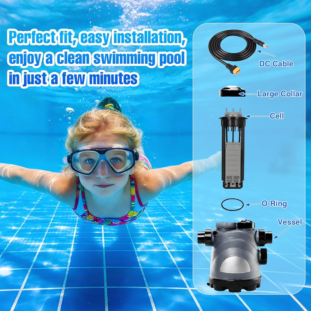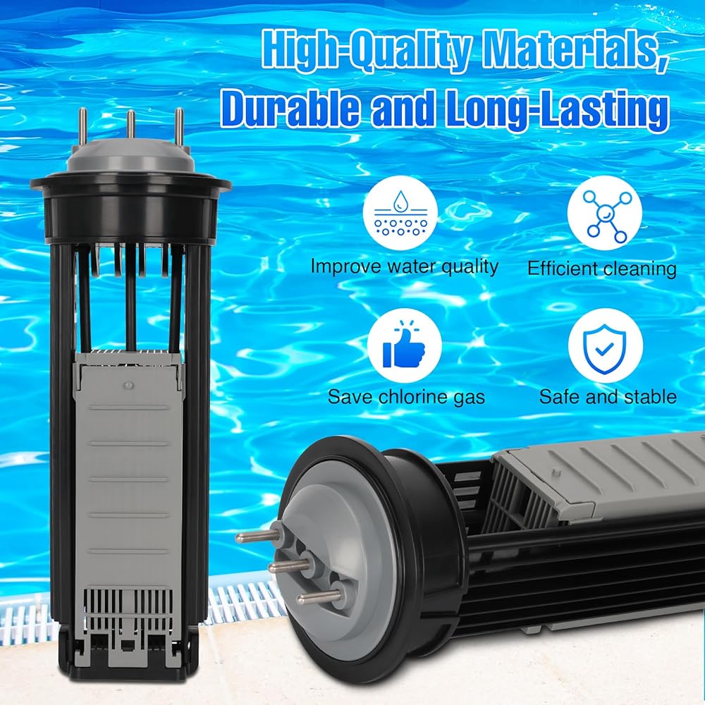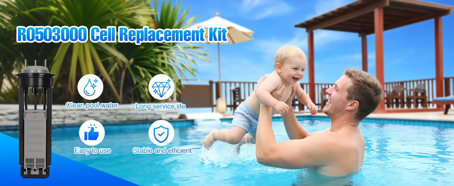 تنظيف مياه حوض السباحة: مجموعة الخلايا R0503000 المزودة بحلقة على شكل O تنتج الكلور بكفاءة للحفاظ على المياه نظيفة وواضحة، مع تصفية الأوساخ والحطام والأوراق والشعر. يوفر مياه حمام السباحة آمنة وصحية وواضحة للاستخدام اليومي.