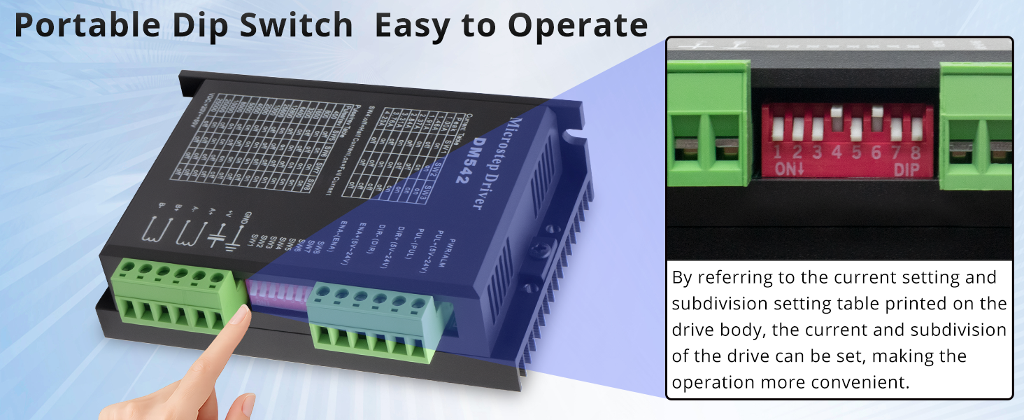محرك قابل للتطبيق: هذا المحرك ذو التقسيم العالي مناسب لمحركات السائر الهجين Nema 17 وNema 23، مرحلتين (4 أسلاك، 6 أسلاك، 8 أسلاك) (القطر الخارجي: 42، 57 مم).