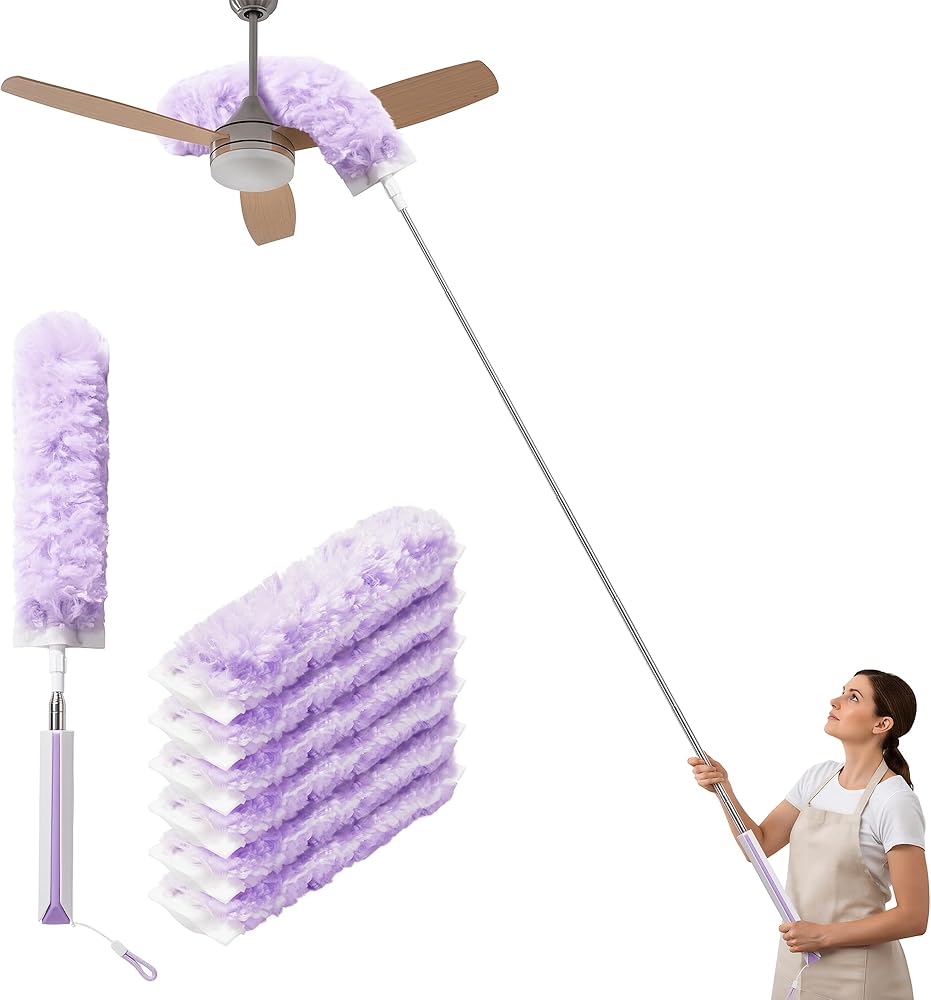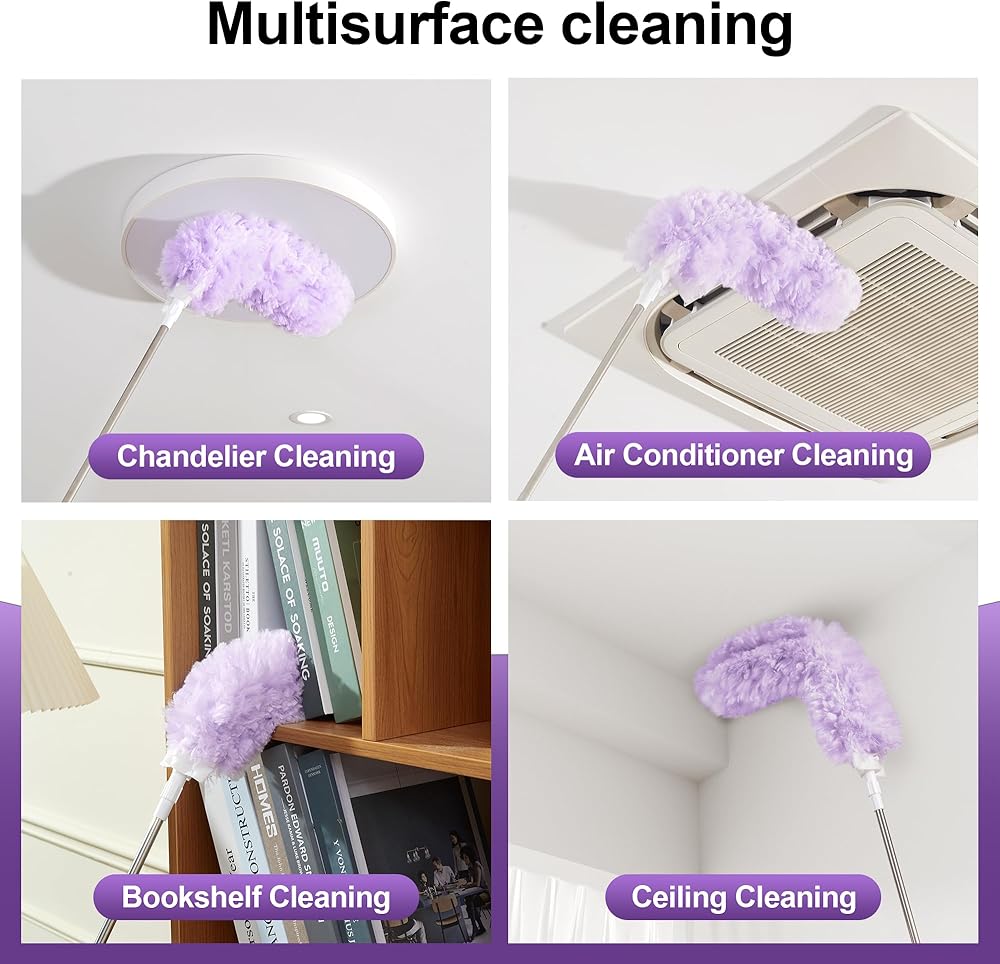 [منفضة لكل سطح] مع رأس قابل للانحناء ومقبض قابل للتمدد، تعد هذه المنفضة مثالية لتنظيف كل ركن من أركان منزلك، بما في ذلك تركيبات الإضاءة ومراوح السقف وستائر النوافذ وأسطح الحمام وأدوات المطبخ. والأفضل من ذلك، أنه لطيف على الأسطح ولن يخدش أو يترك علامات