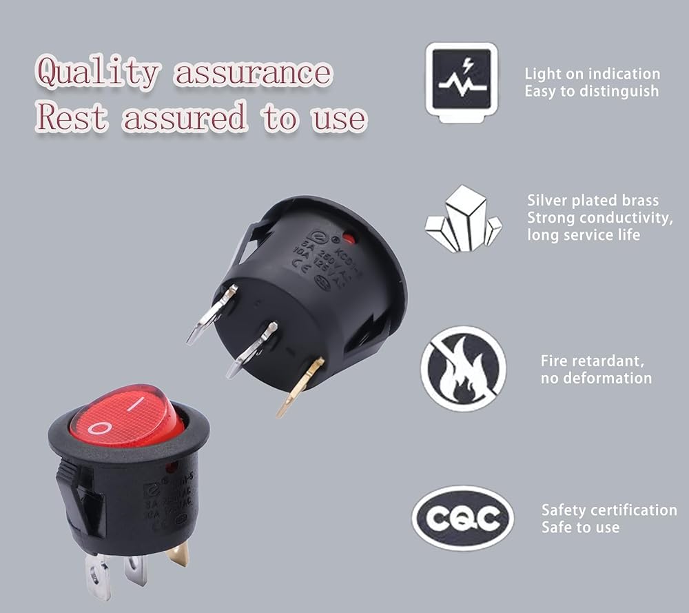 Featuring round red design, not only is it visually appealing but also easy to spot and operate.Adds a touch of color to your equipmentThe rocker switch provides intuitive and easy operation with its simple on/off function.