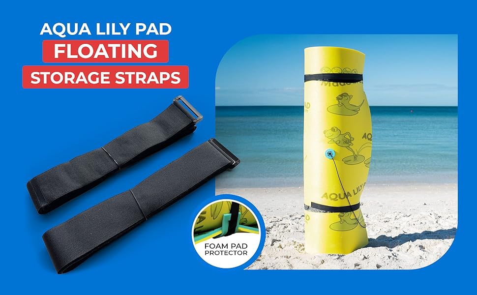 تخزين السجادة العائمة: أحزمة تخزين مصممة لربط وتأمين وسادات Aqua Lily المدرفلة، ومنصات Bullfrog، وحصائر مياه Maui للتخزين المدمج بعيدًا عن الماء.