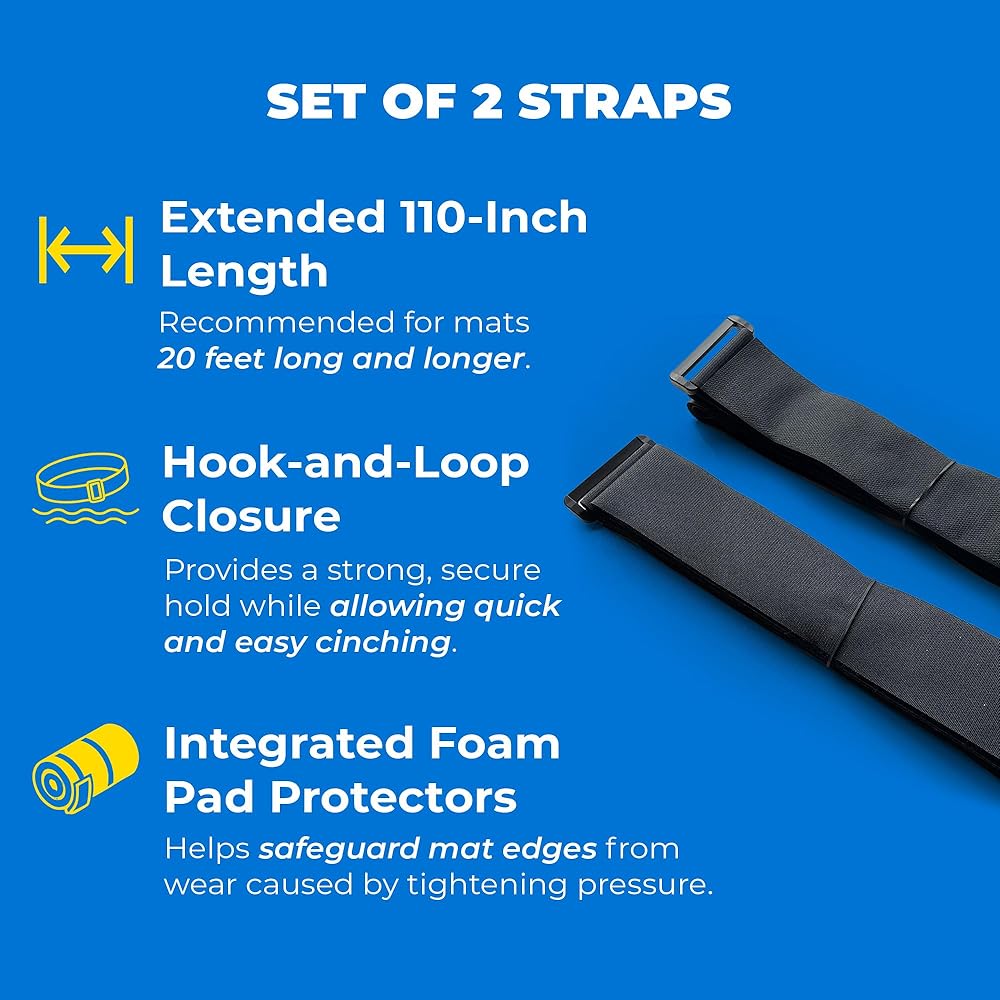 مقاس قابل للتعديل 110 بوصة: يبلغ مقاس كل حزام 110 بوصة ويناسب سجادات المياه بطول 20 قدمًا وأطول؛ إغلاق بخطاف وحلقة يسمح بإغلاق سريع وقابل للتعديل