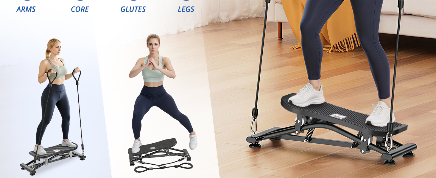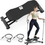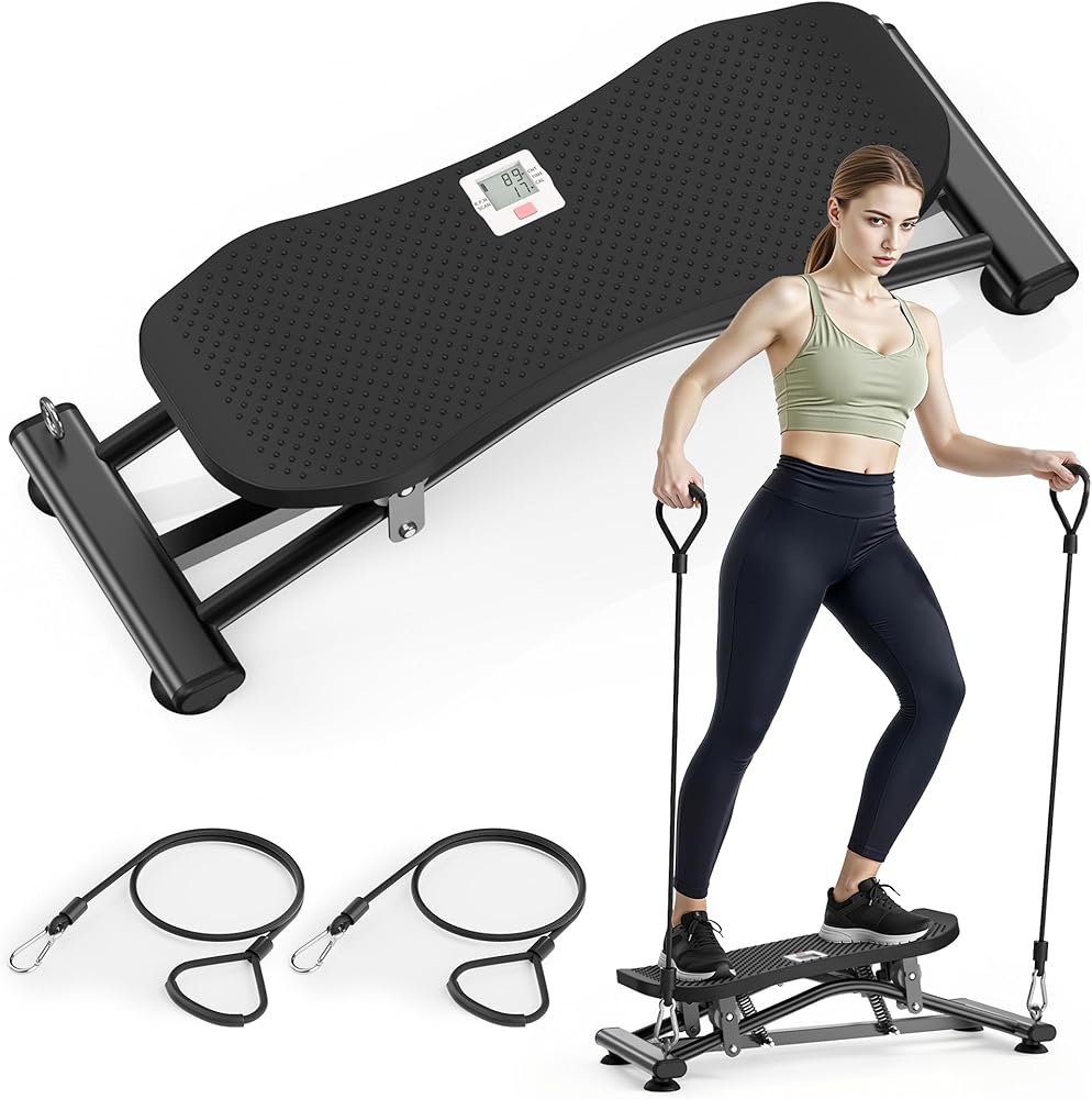 لوح توازن RYGEO مع أشرطة مقاومة، خطوة هزازة متعددة الاستخدامات، لوح تمايل يتميز بشاشة LCD، مدرب تزلج عالي السعة 330 رطلاً لتمرين الجسم بالكامل في المنزل