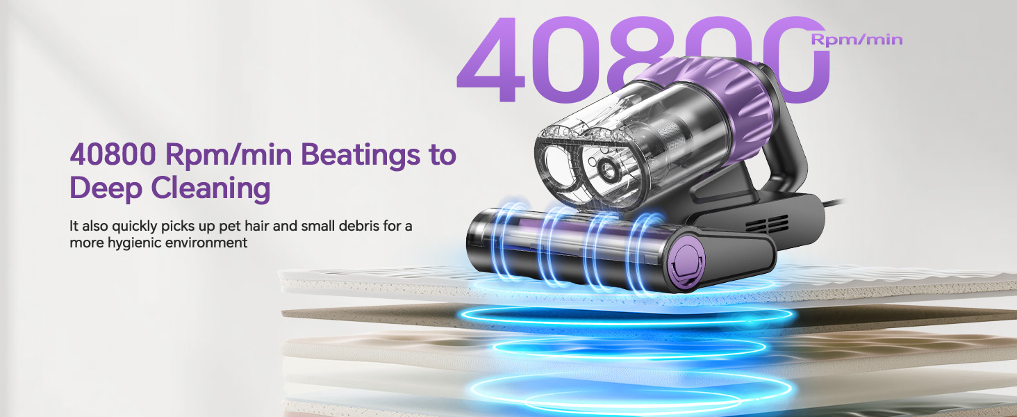 تنظيف عميق بتقنية الضرب: يعمل نظام الضرب 40800 دورة في الدقيقة على تحريك مرتبتك، ويزيل الغبار العميق والحطام وشعر الحيوانات الأليفة من أجل نظافة أكثر شمولاً وبيئة نوم أكثر صحة.