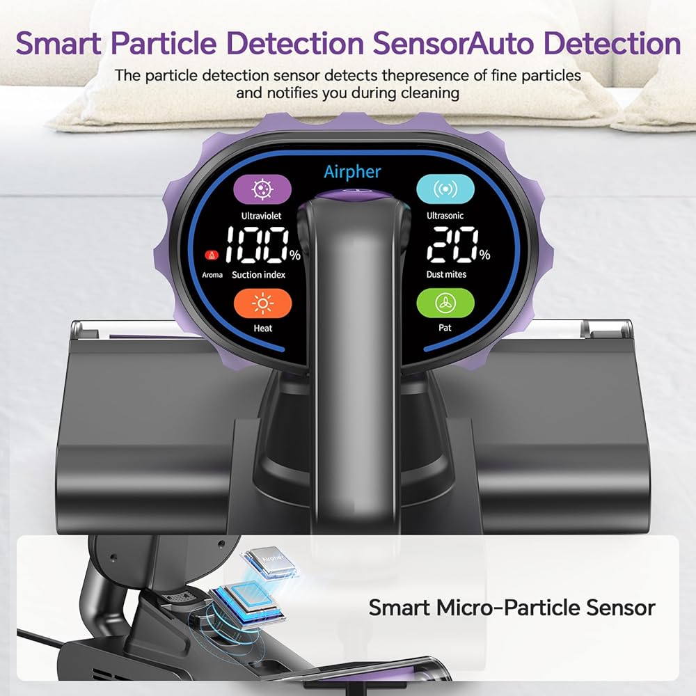 【تقنية إضاءة UV-C】يتغلغل ضوء Airpher's 253.7nm UV-C بعمق في المرتبة والمفروشات، ويرفع الجزيئات المخفية بشكل فعال ويحسن النظافة العامة والراحة لسريرك وأثاثك.