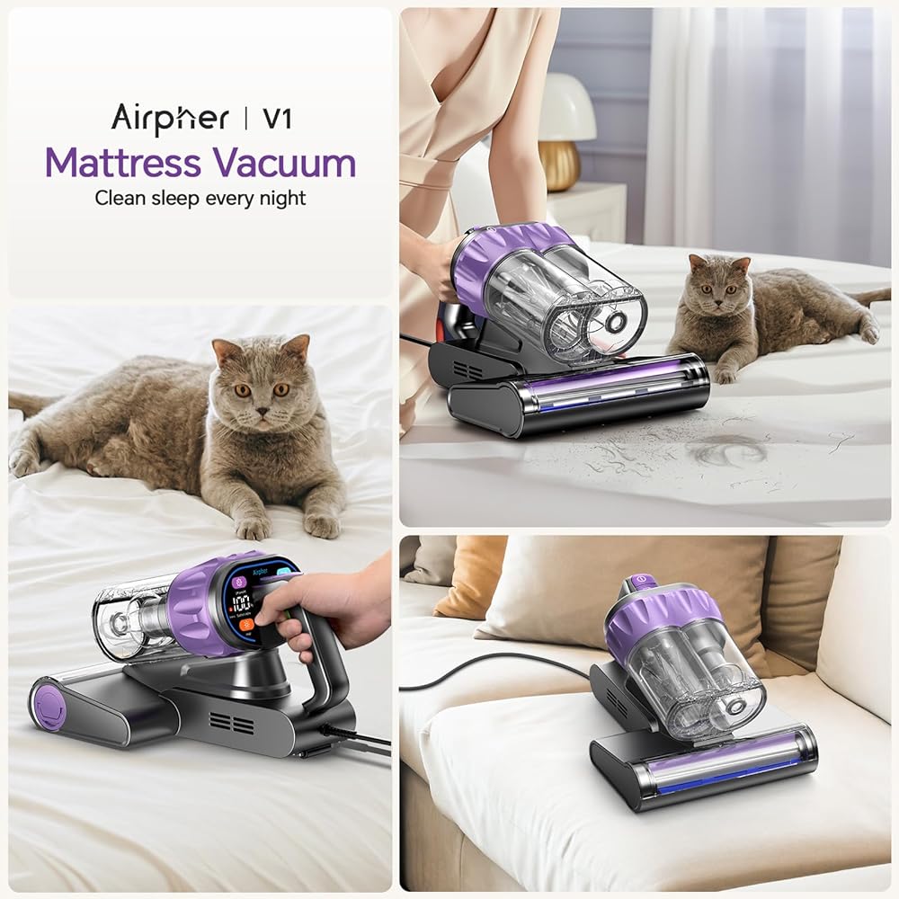 مكنسة كهربائية قوية للمرتبة: استمتع بتجربة شفط بقوة 16000 باسكال وضرب بسرعة 40800 دورة في الدقيقة لتنظيف المرتبة بعمق. تعمل مكنسة المرتبة Airpher على إزالة الغبار وشعر الحيوانات الأليفة والمواد المسببة للحساسية بسهولة من المرتبة والسرير والأريكة، مما يضمن بيئة نظيفة ومنعشة. أفكار هدايا عيد الحب للنساء