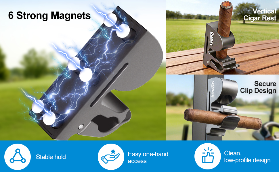 Magnetic Golf Cart Holder for Convenient On-Course Use Enjoy a more convenient experience on the golf course with this magnetic golf cart holder, designed to keep your item clean, secure, and easily accessible during your round. Instead of placing it on the ground or balancing it on the cart, this holder provides a dedicated resting spot while you drive, walk, or prepare for your next shot. The built-in magnetic base securely attaches to metal surfaces on most golf carts, helping maintain stability even when riding over uneven paths. For added flexibility, the included adjustable strap allows secure attachment to non-metal or round surfaces such as rails or poles. Designed to fit a wide range of sizes from 30–70 ring gauge, this holder offers a stable and convenient resting position while helping protect the item from damage. Crafted from precision CNC-machined aluminum alloy, the holder is lightweight, durable, and built for outdoor use. The sturdy construction maintains its performance through repeated use on the course. Simple to install and easy to use, this golf cart holder is a practical golf accessory and a thoughtful gift for golfers, suitable for birthdays, Father's Day, golf trips, or weekend rounds.