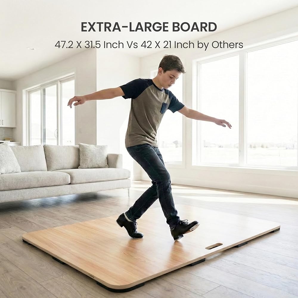 • سطح تدريبي كبير جدًا يوفر لوح الرقص الواسع مقاس 47.2 × 31.5 بوصة مساحة أكبر للتحرك بحرية مقارنة باللوحات القياسية. مثالية للرقص الصنبور، والرقص الأيرلندي، والفلامنكو، والانسداد، وممارسة الإيقاع.
