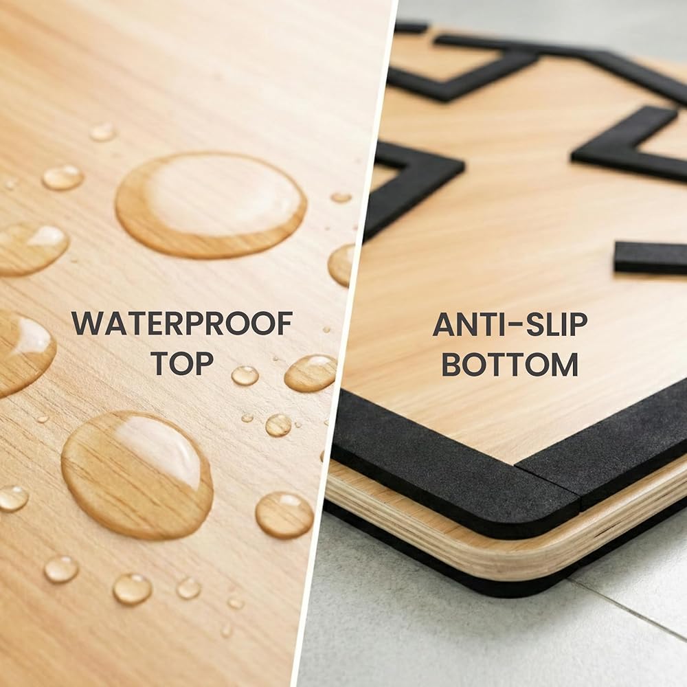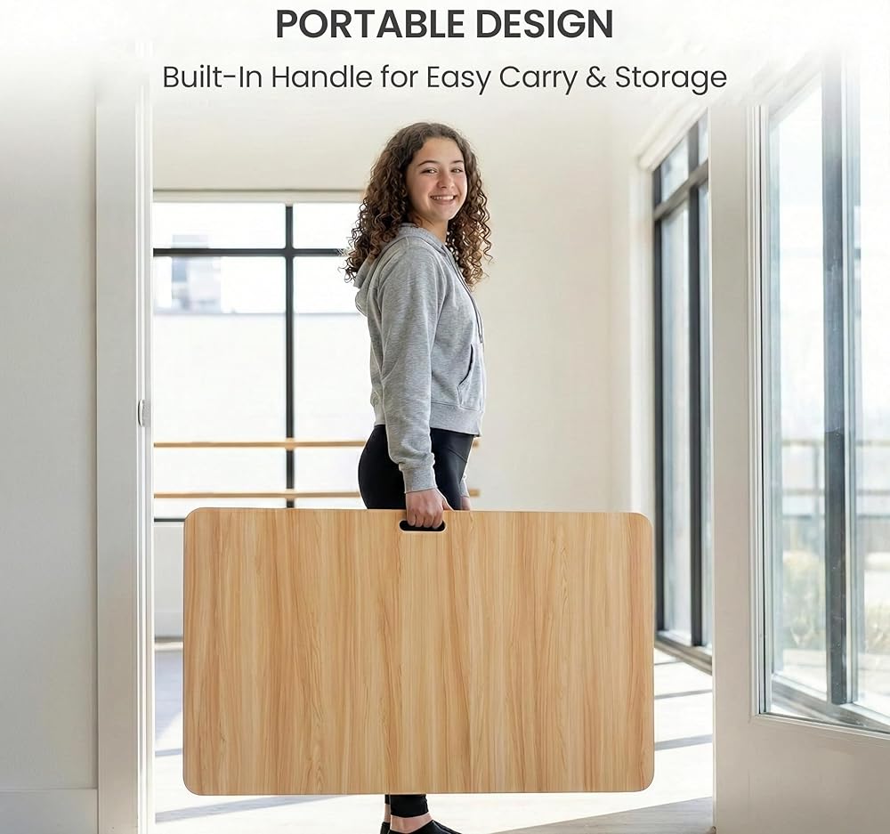 • سطح متين مقاوم للماء، طبقة علوية خشبية محكمة الغلق ممتازة تقاوم الرطوبة والتآكل، مما يجعل أرضية الرقص هذه للتمرين المنزلي متينة للتدريب طويل الأمد والاستخدام اليومي.