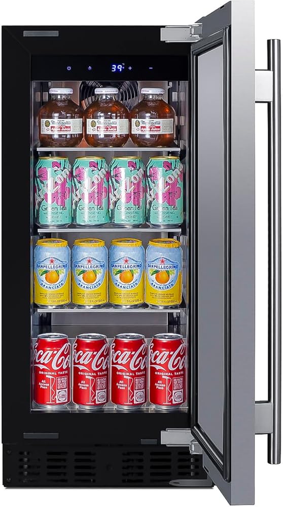 Features: Total capacity of this beverage center is 1.72 Cu. Ft. Can hold up to 32 beverage cans Comes with touch control for easy use Approved for commercial use This product is ETL listed Has adjustable shelves for rearranging with your needs Minimum temperature for bottles/cans is 36 degrees Fahrenheit and a maximum of 43 degrees Fahrenheit Covered under a of 1 year labor and parts and 5 year compressor Specifications: Can Capacity (12 oz.): 32 Total Capacity: 1.72 Cu. Ft. ADA Approved: Yes Reversible Door: Yes Depth: 17-3/4" Width: 14-3/4" Height: 32"
