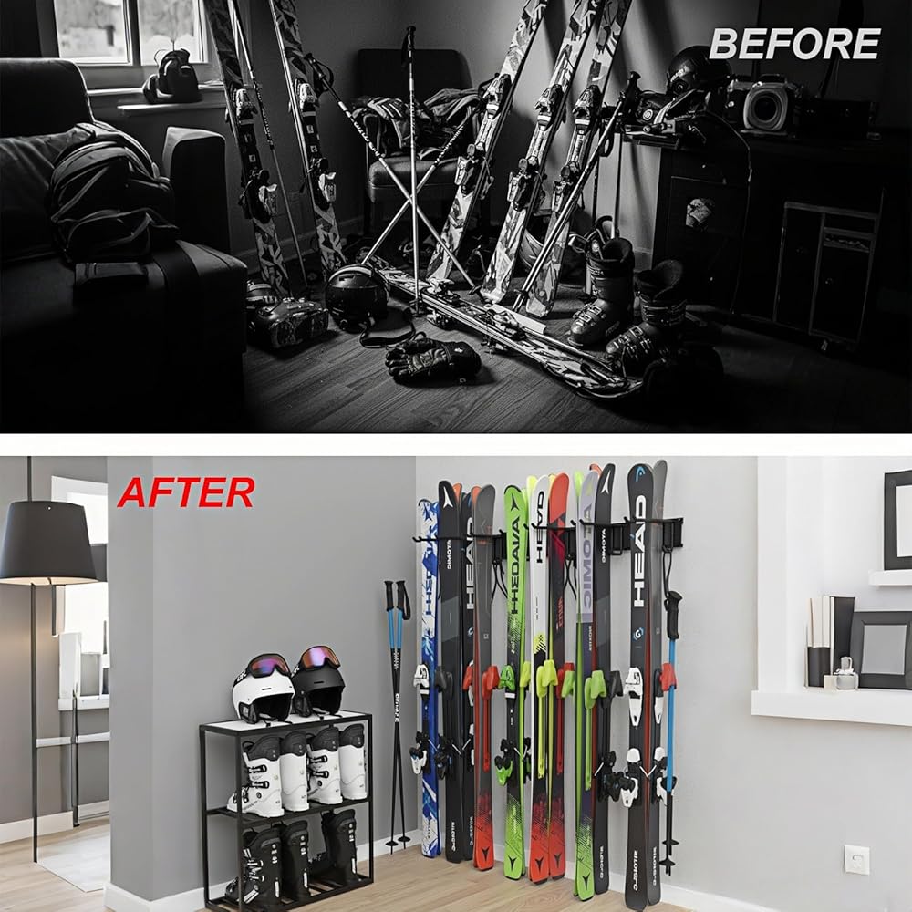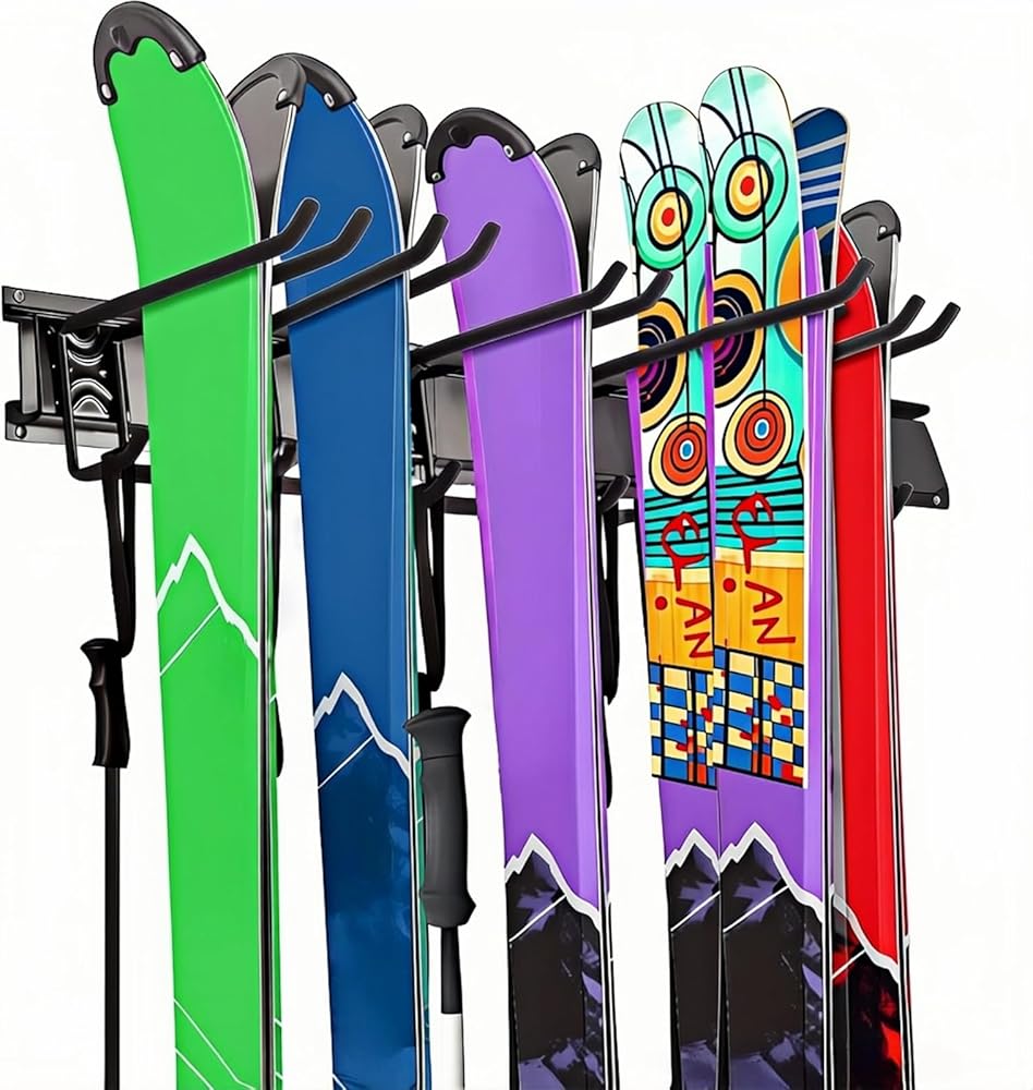 【حماية مطاطية مضادة للخدش】احمِ استثمارك الراقي. كل خطاف مغلف بغطاء مطاطي سميك غير قابل للانزلاق يؤمن زلاجاتك بلطف دون خدش الحواف أو إتلاف القاعدة. حافظ على معداتك في حالة "جاهزة للتمزيق" طوال العام.