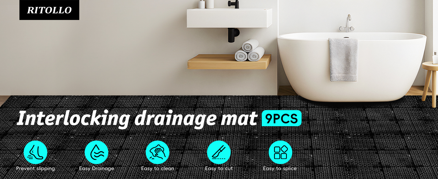 【تصريف سريع، لا يوجد برك】بلاط تصريف وسادة متشابكة معيارية مع فتحات تصريف وأقدام مرتفعة تصرف المياه بسرعة، مما يساعد على الحفاظ على بلاط أرضية الدش ومناطق حمام السباحة أكثر جفافًا ونضارة وآمنة للانزلاق.