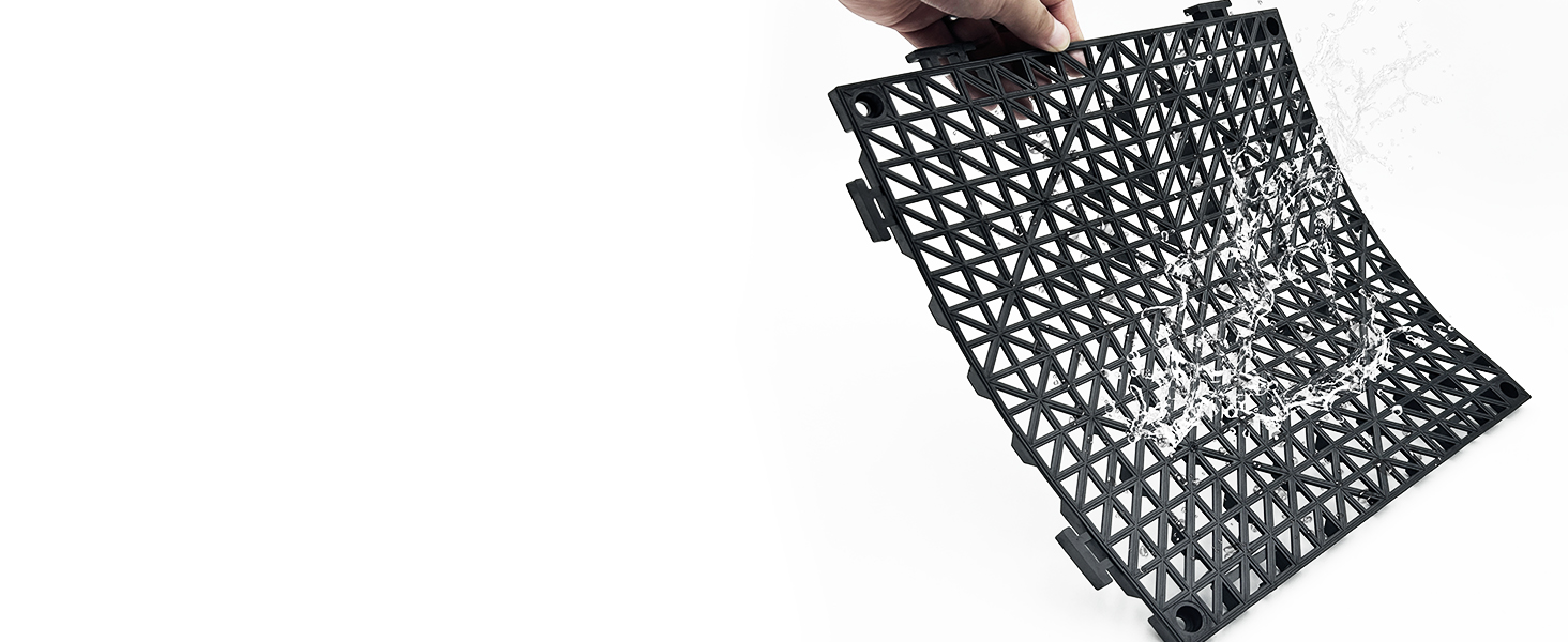 【تنظيف خرطوم للأسفل، بحث ذكي】قم ببساطة بخرطوم أسفل سطح بلاط الصرف واترك تصميم التصريف الذاتي يغسل الأوساخ والحطام، وهو بديل خفيف الوزن عند مقارنة بلاط الأرضيات المطاطية المتشابكة أو بلاط الأرضيات المطاطية في الهواء الطلق.