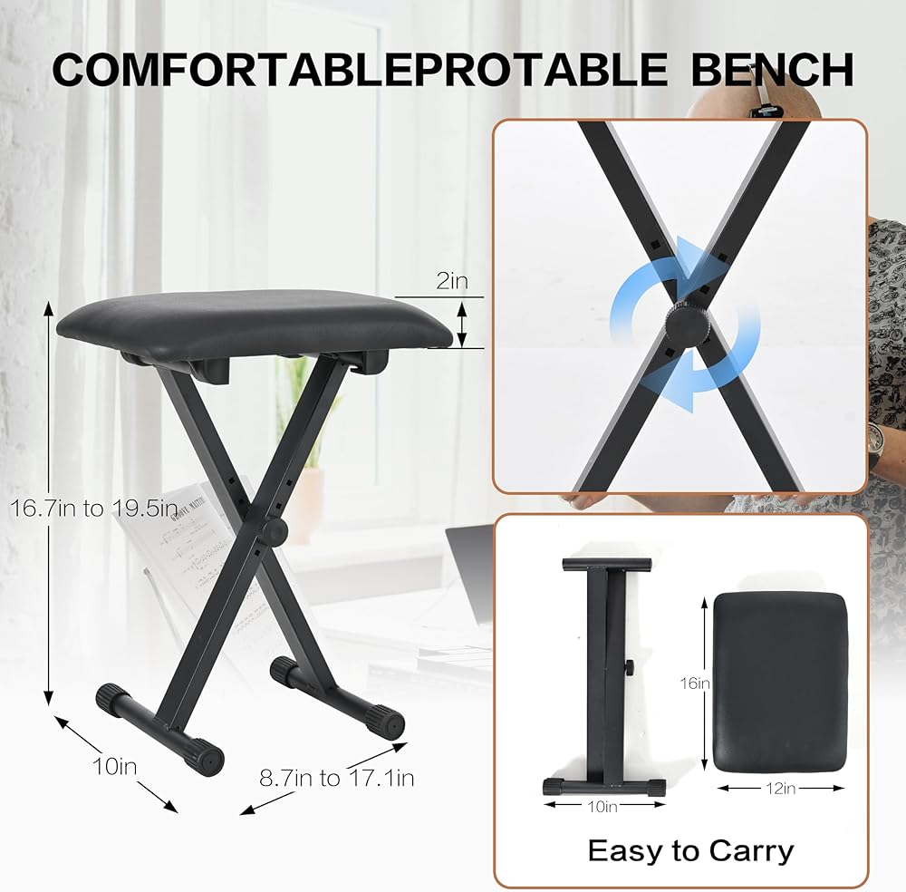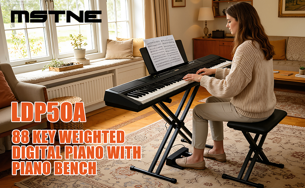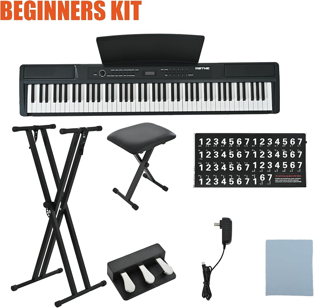 【مجموعة مثالية للمبتدئين】: البيانو الكهربائي MSTNE 88 هو عبارة عن حزمة بداية كاملة. تأتي مجهزة بحامل قوي مزدوج X، ومقعد بيانو مريح، ودواسة ثلاثية معدنية، وملصقات مفاتيح البيانو، وغطاء من القماش. تأتي هذه الملحقات في عبوة واحدة، لذلك لن تضطر إلى قضاء المزيد من الوقت في اختيارها. اضبط ارتفاع الدعامة والمقعد لتوفير الراحة. مما يسمح لك بالبدء بسرعة في رحلتك الموسيقية.
