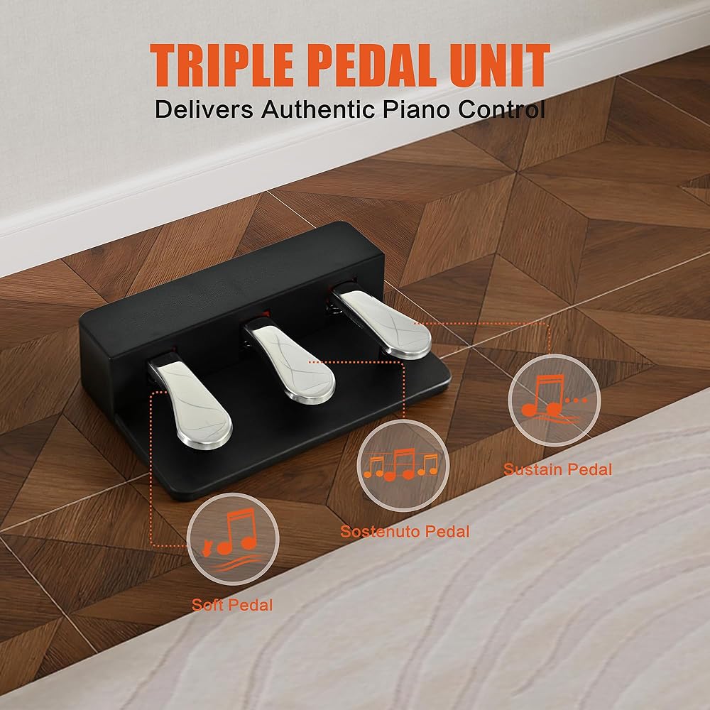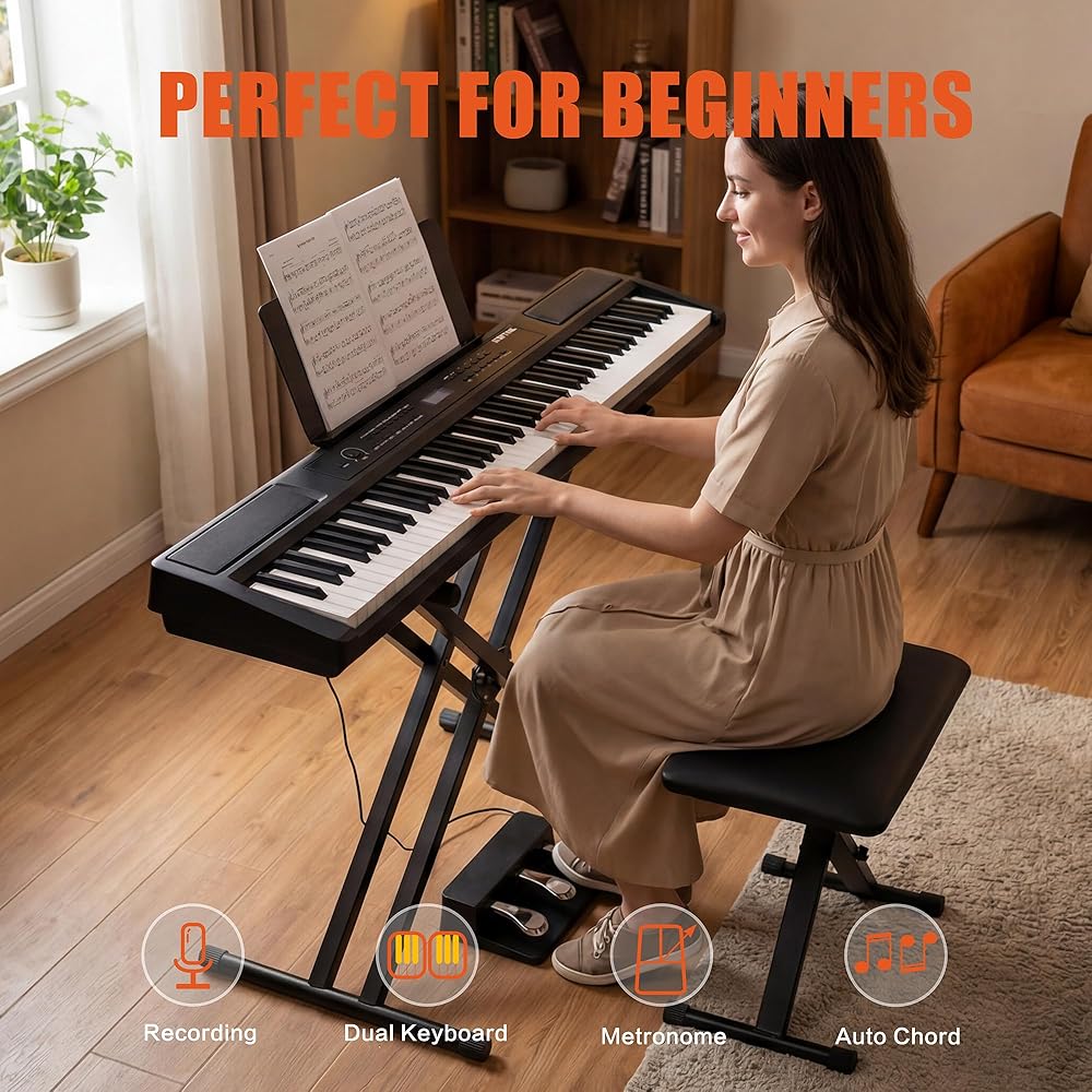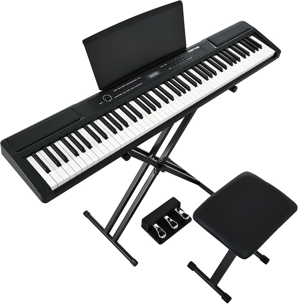 بيانو رقمي 88 مفتاحًا مرجحًا، 88 مفتاحًا لوحة مفاتيح بيانو كاملة الحجم مع مقعد بيانو، وحدة احترافية ذات 3 دواسات، حامل قابل للتعديل، بيانو كهربائي للمبتدئين واللاعبين المتوسطين (أسود)