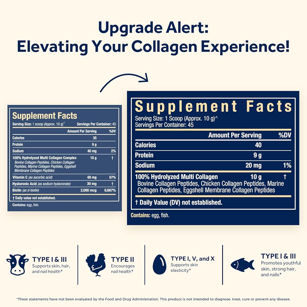 • كولاجين أفضل، تجربة أفضل: نحن نهتم بتجربتك، لذلك نبذل الوقت والجهد لترقية تركيبة الكولاجين الخاصة بنا. الآن، يذوب بسهولة، ويمتزج بسلاسة دون أي كتل، كما أنه خالٍ تمامًا من الروائح، مما يجعل الاستمتاع به أمرًا سهلاً بقدر ما هو مفيد لك.