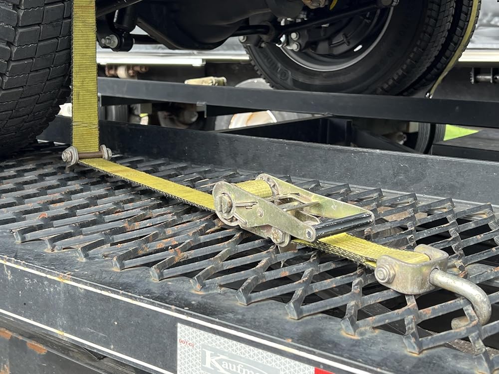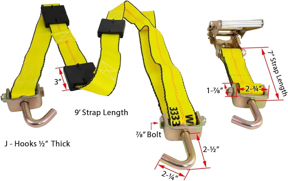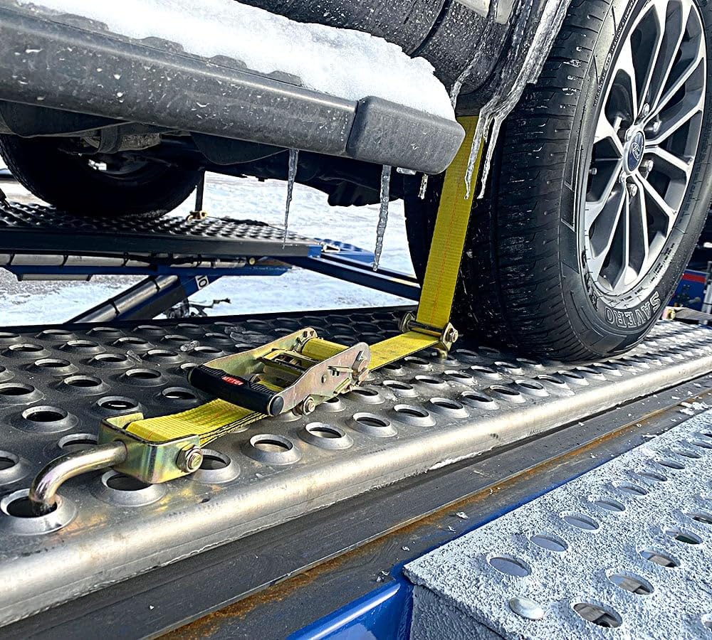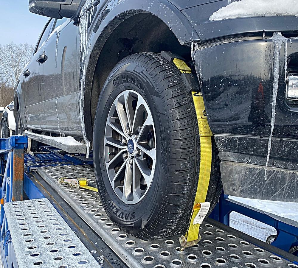 The auto carrier tire straps are made with 2" heavy duty polyester webbing for maximum strength.