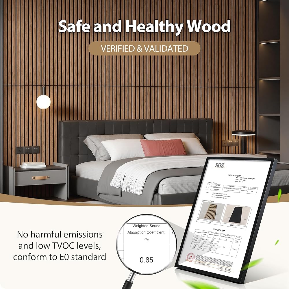 • آمنة وصديقة للبيئة: ألواح الجدران الصوتية مصنوعة من خشب MDF عالي الجودة مع ألياف البوليستر عالية الكثافة، ولا توجد انبعاثات كيميائية ضارة ومستويات منخفضة من TVOC، هذه اللوحات تخلق جوًا آمنًا لمساحة معيشتك.
