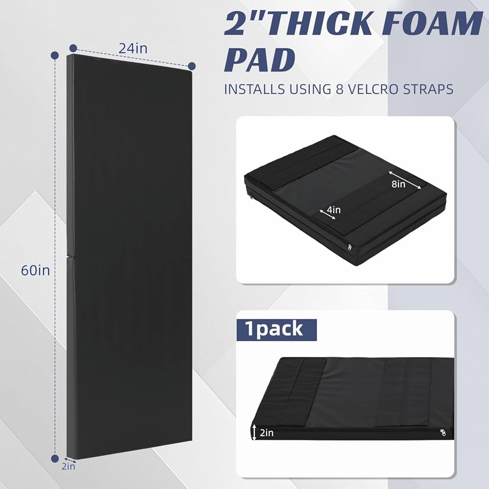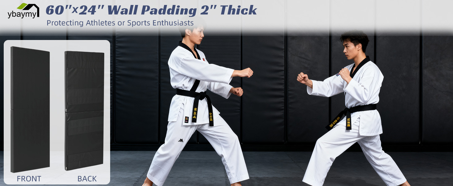 وسادات حائط لصالة الألعاب الرياضية، وسادة حائط سميكة مقاس 2 بوصة، واقي تثبيت على الحائط لملعب كرة السلة، مقاس 60 بوصة طول × 24 بوصة عرض، سجادات تمارين مضادة للتصادمات للطابق السفلي من التايكوندو (أسود)